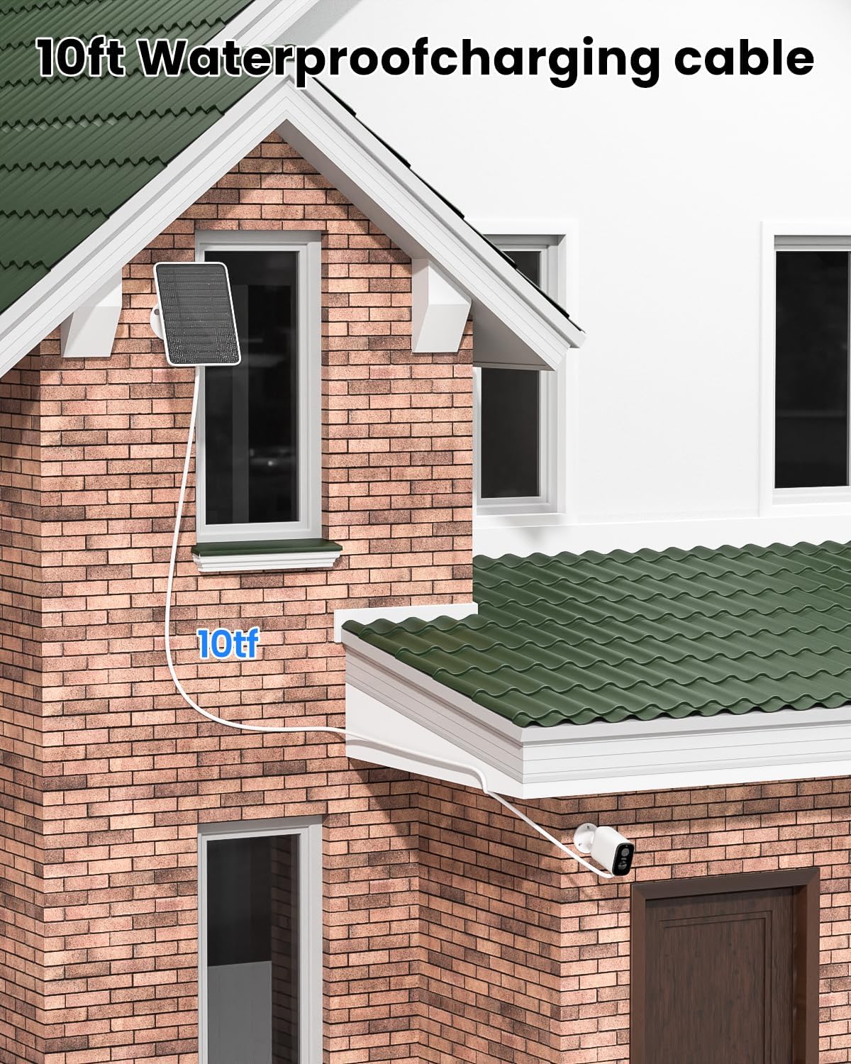 - 【Non-Stop Solar Power with 5W Power Output】The solar panel offers 5W(Max) power output, which is more efficient and faster than ordinary solar panels. Absorb sunlight and convert it into electrical energy continuously, keep your camera operating even you were away from home. Free your hands and save time without frequently charging your surveillance cameras.
