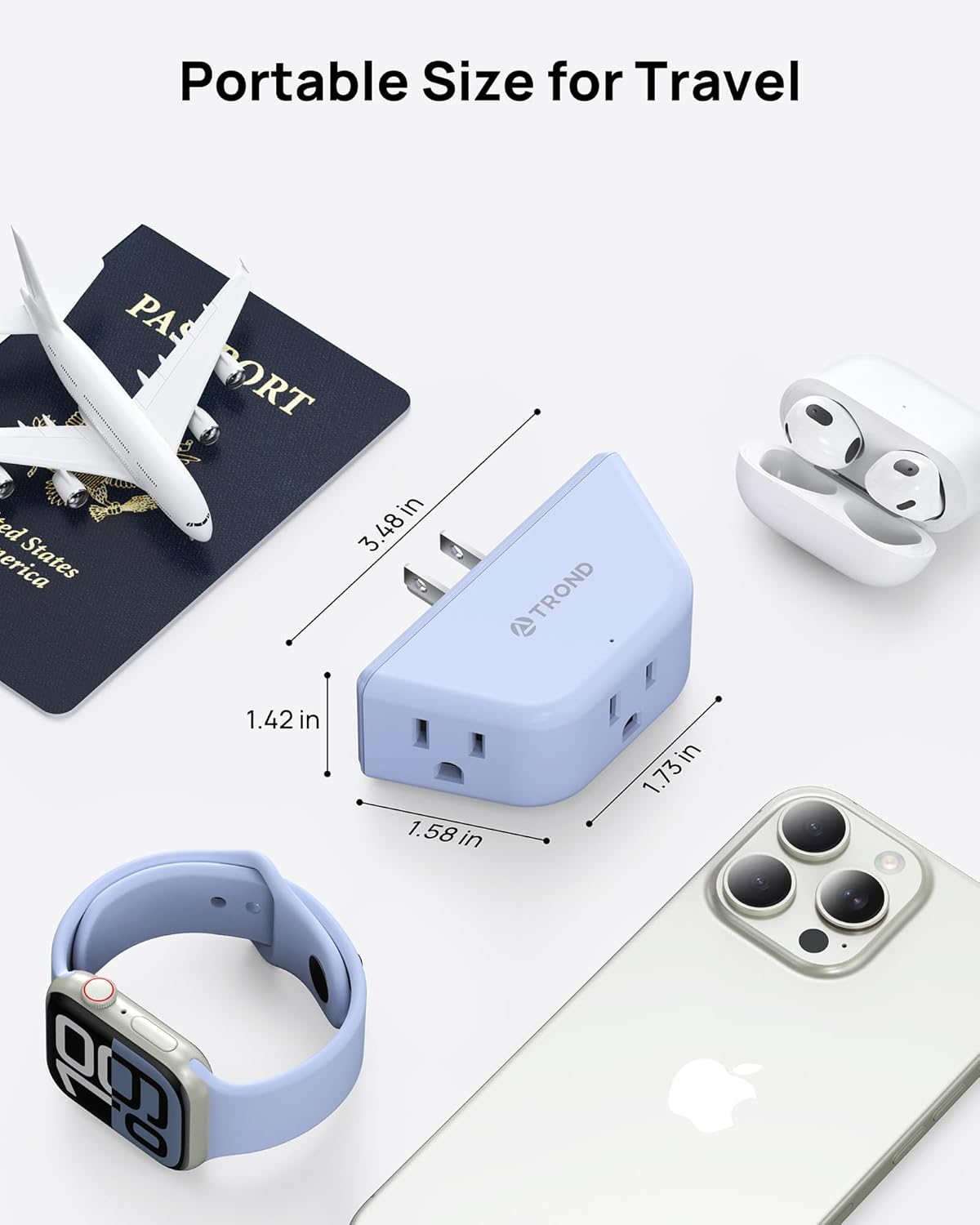 - Compact and Practical: Measuring just 3.48 x 1.73 x 1.42 inches, its space-saving design makes it especially suitable for tight spots, such as behind couches or furniture. This stylish outlet extender comes in a calming blue color, perfect for adding a touch of serenity and sophistication to your home, dorm, or travel essentials