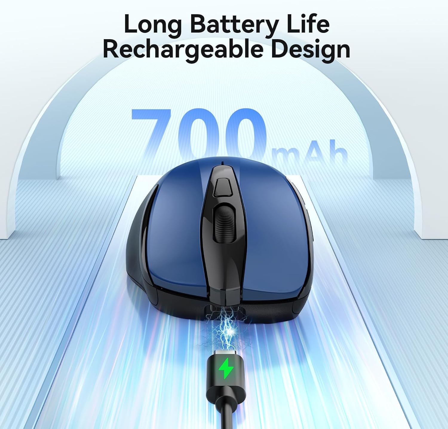 - Rechargeable Mouse: Eliminate the hassle of frequent battery replacements with the computer mouse that offers a rechargeable feature. Up to 90 days of use on a single 1.5 to 2-hour charge (varies by usage). Ideal for anyone in search of a rechargeable wireless mouse. (A charging cable is included.)