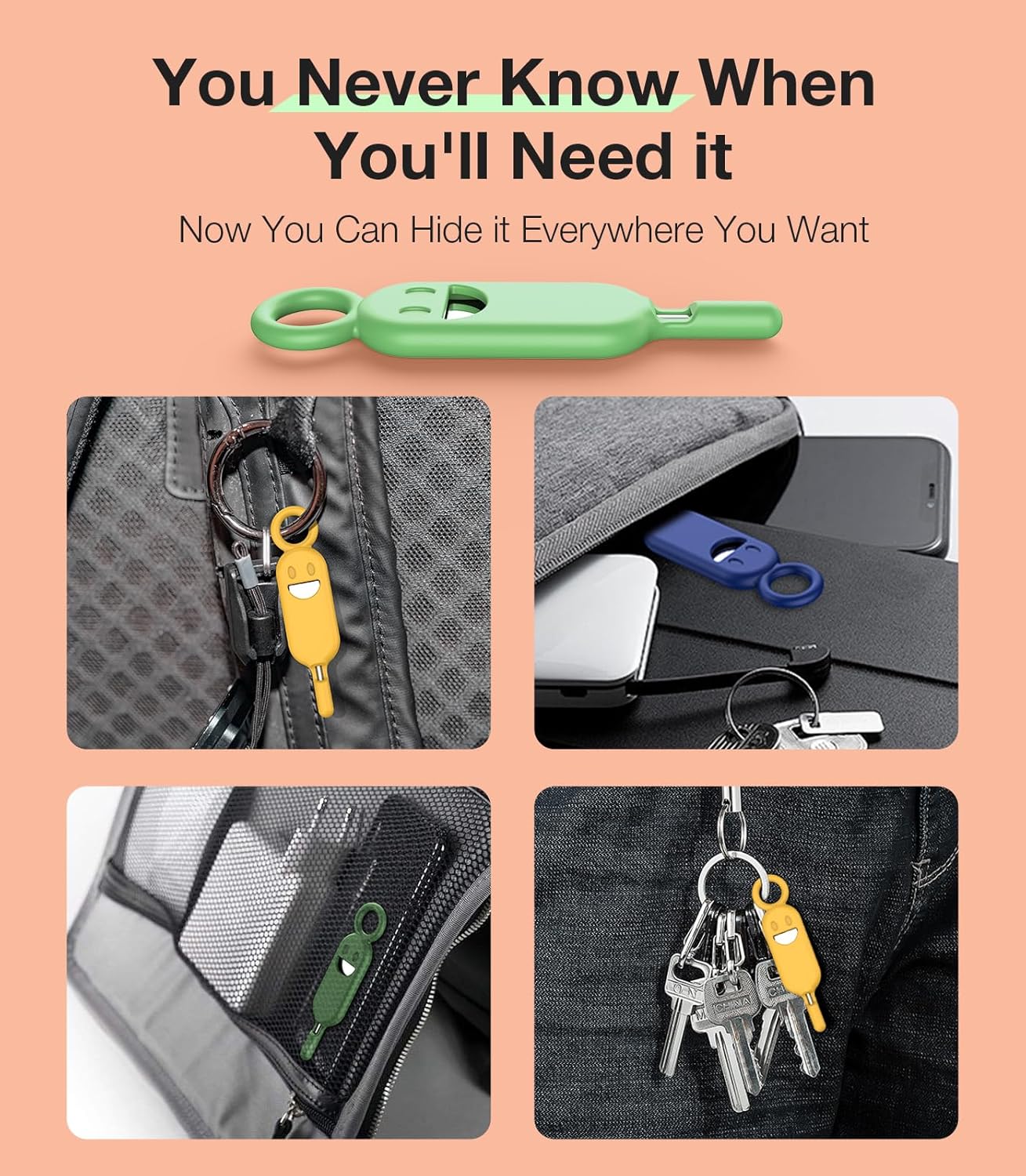 - 【Easy to Spot & Carry】Never lose your SIM ejector tool again! The vibrant silicone case makes the sim pin instantly visible, even in a cluttered bag or dim light. Clip it to your keys or tuck it into your bag—always ready for those unexpected SIM swaps!