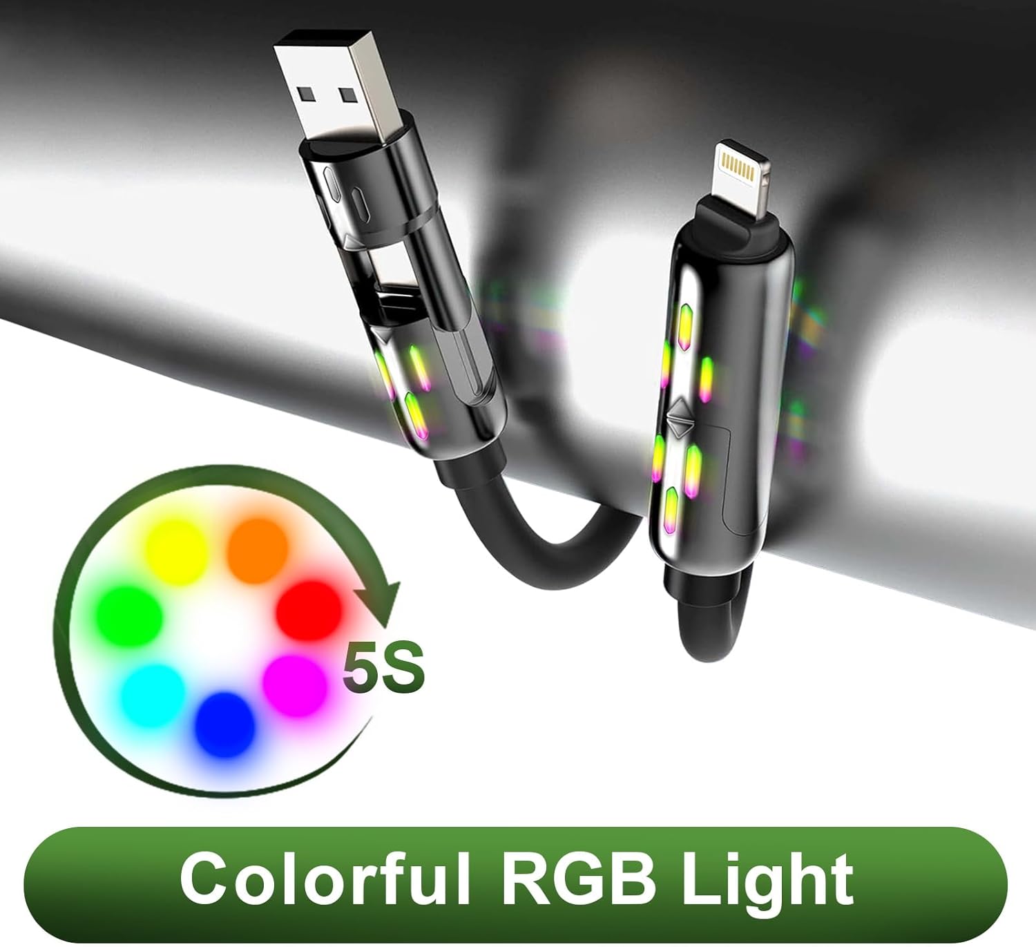 KerrKim 240W 4-in-1 Multi Fast USB Charging Cable with Breathing Light, USB A Type C Lightning Cable for iPhone 16 15 14 13 12 11 Pro Max iPad Samsung Galaxy MacBook iPad Tablets & More (6FT, Black)