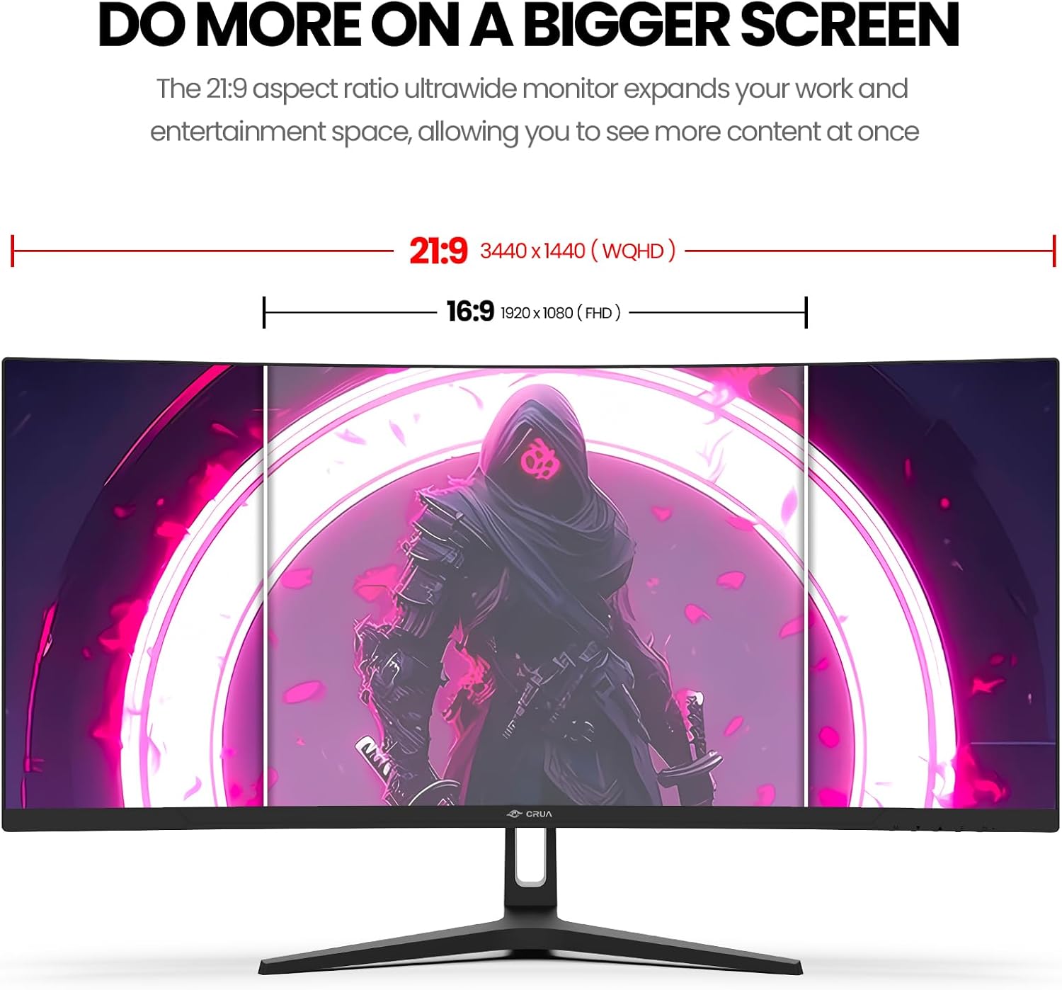 - [Ultra-Wide Monitor] The CRUA 34-inch curved monitor features a 21:9 aspect ratio and a 1500R curvature, expanding your field of view and providing ample space for comfortable multitasking and content creation across various media, thereby enhancing your productivity and efficiency.PIP and PBP modes connect and display content from two devices simultaneously, saving you the need to frequently switch screens.