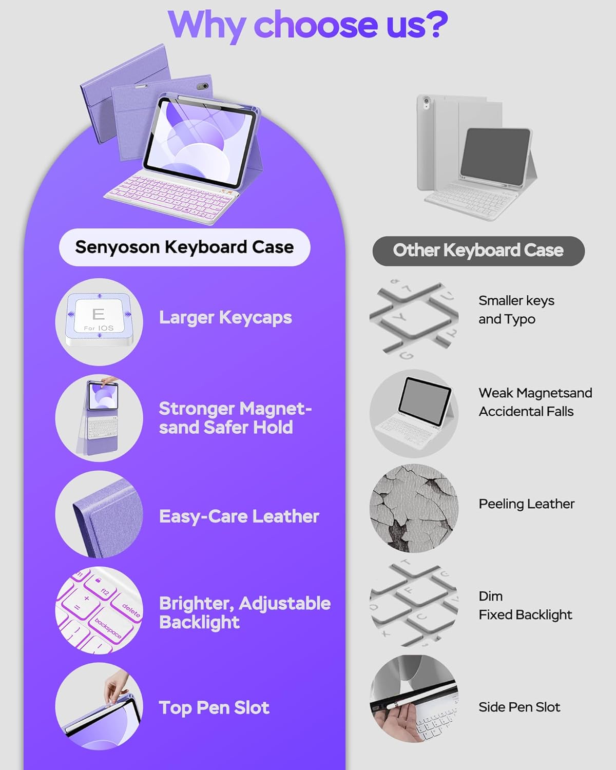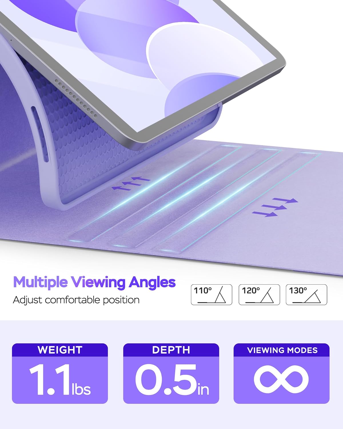- Illuminate Your Typing: Enhance your iPad with a 7-color backlit keyboard and laser-etched keys. Perfect for any lighting, from late-night work to cozy cafés. Enjoy quiet, comfortable typing with customizable backlighting and ergonomic scissor-switch keys