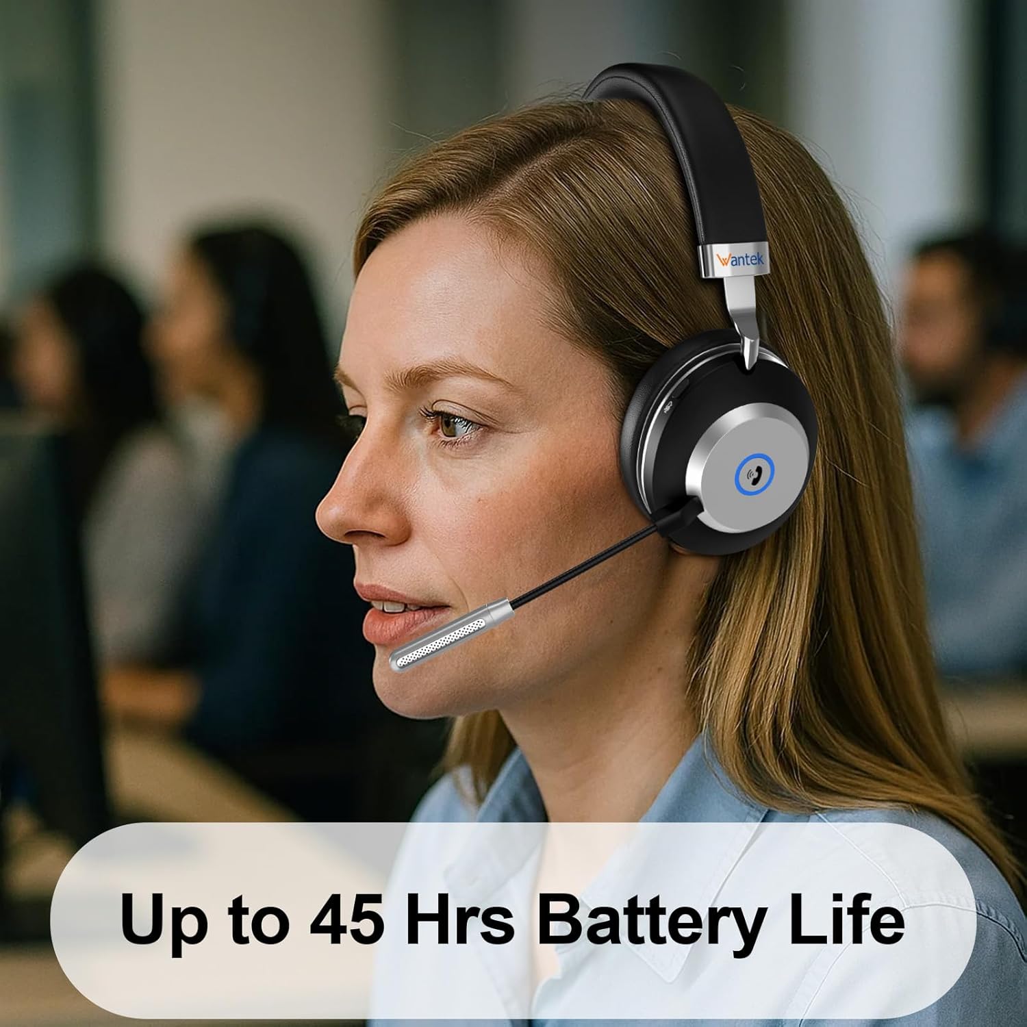 Wantek Wireless Headset with Microphone for PC/Laptop,USB Dongle&Noise Cancelling Mic, Bluetooth Headphones Compatible with Windows, MacOS, iOS, iPadOS, Android