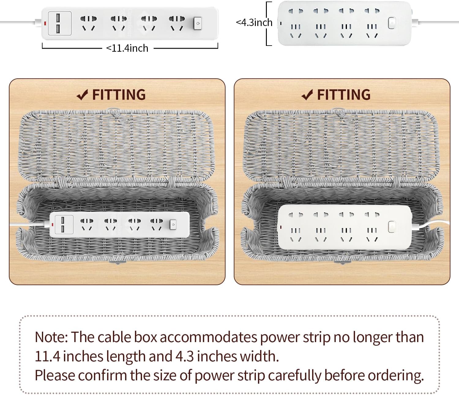 - Versatile Pretty Storage: Beyond power strip and wire hider, this multi-functional large capacity cord storage box doubles as a decorative box with lid for storing remotes, utensils, sewing kits, snacks, napkins, MP3, phone, watch, wallet, cometic, etc. Plus, use it as a small plants or trinkets, counter/cabinet/shelf storage basket, or under desk organizer. Streamline organization while enhancing visual appeal.