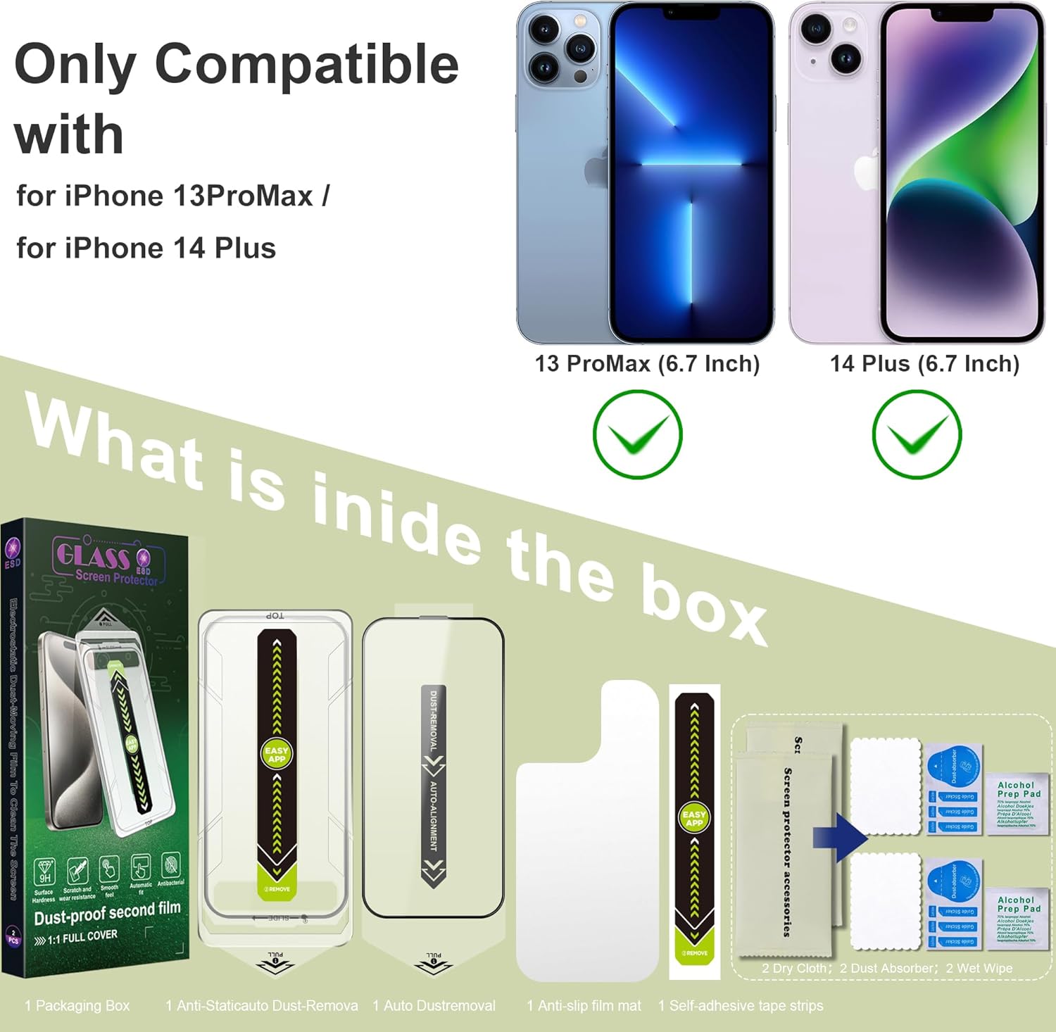 [2-Pack Ultra HD Clear Screen Protector for iPhone 13 Pro Max/14 Plus (6.7-Inch),9H Tempered Glass,Full Coverage,Anti-Fingerprint,Auto Dust Removal,Bubble-Free,Easy Installation