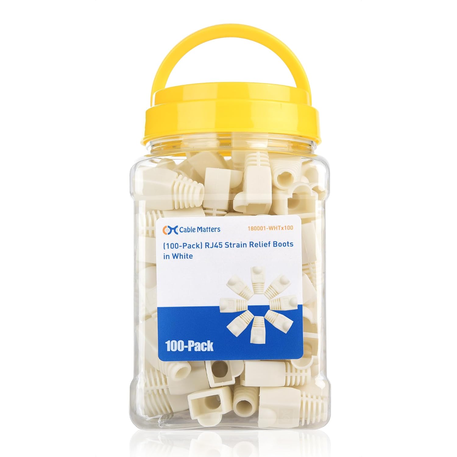 Cable Matters 100-Pack Cat6 / Cat5e RJ45 Strain Relief Boots, RJ45 Boot, Cat 6 Boot, Cat6 Ethernet Boots, White, Suitable for 6.5mm (0.25in) Ethernet Cables