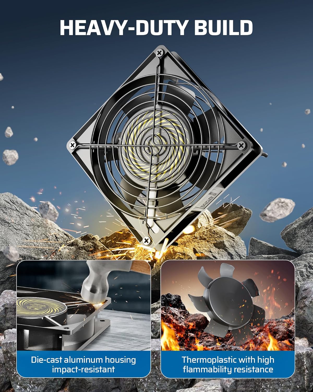 - [Durable Build] Crafted from rugged die-cast aluminum, the housing ensures long-lasting performance even in harsh environments; our cooling fan blades are made from thermoplastic, offering excellent flame resistance