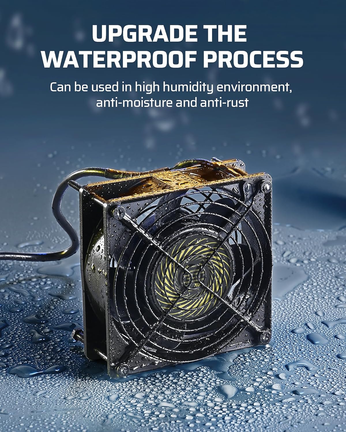- [Upgraded Waterproofing] Designed to perform in high-humidity environments, the fan’s body is rust-proof and waterproof; ideal product for use in greenhouses, grow rooms, chicken coops, garages, and other moist settings