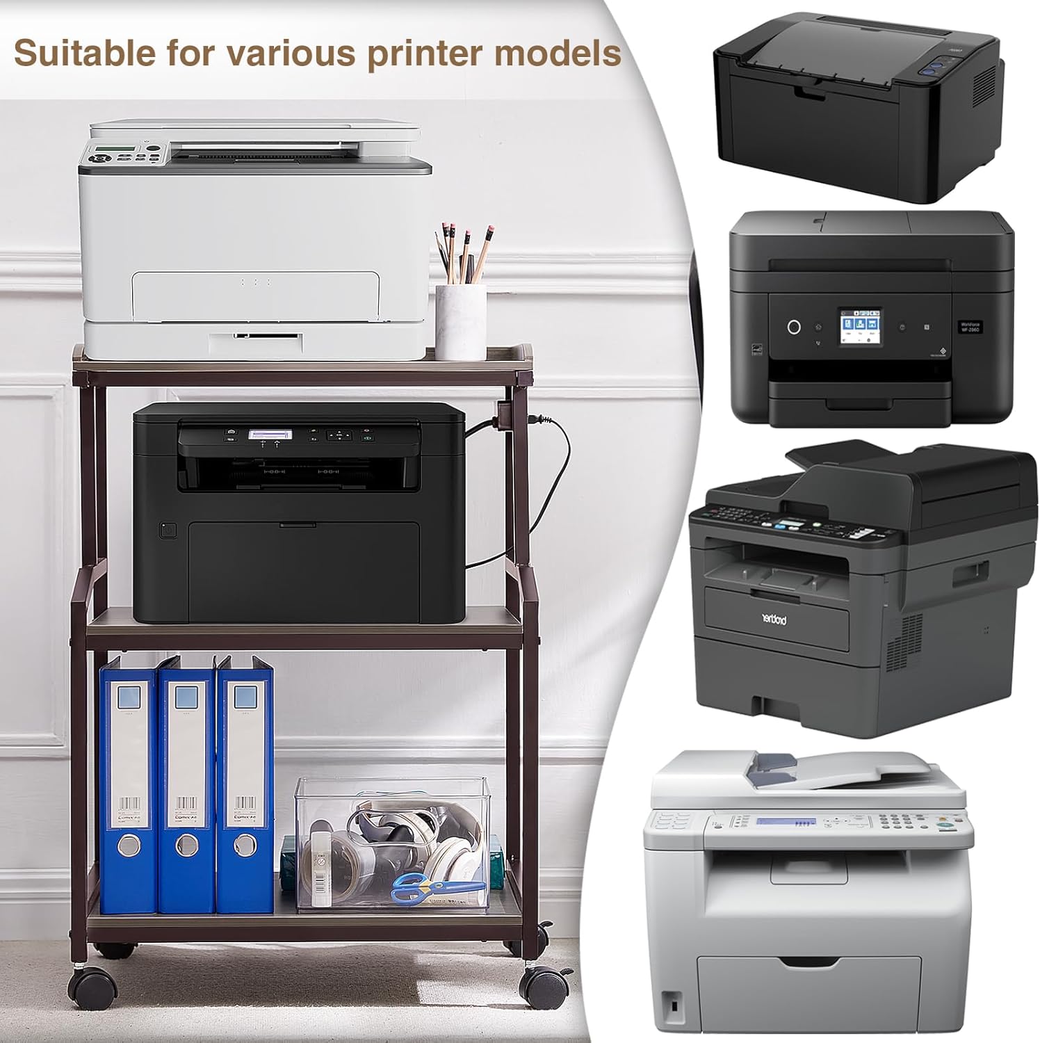 - Multi-Functional Storage Rack:The Multipopose Rolling Printer Cart adopts industrial design style,is suitable for placement in various scenes. You can use it in offices, homes, bedrooms, study rooms, kitchens, etc.The 3-tier printer cart with wheels can also be used as a file cabinet, kitchen cart, coffee table, sofa end table, plant stand rack, living room storage rack, nightstand