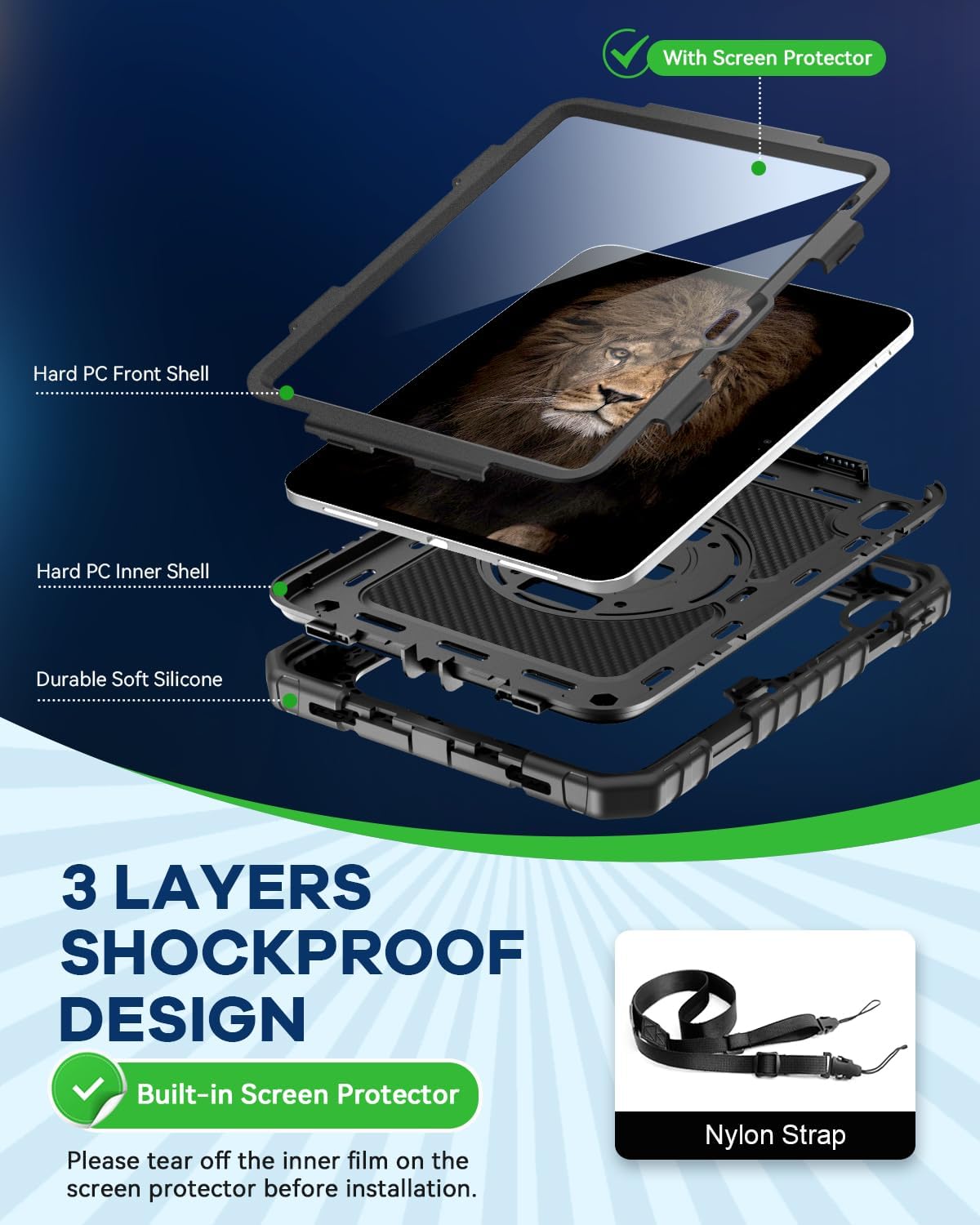 - Built-in Screen Protector: This case for iPad 10th generation kids made of durable hard PC & silicone, 3-layer full body protection structure with SCREEN PROTECTOR, provide a military grade protection & anti-scratch.