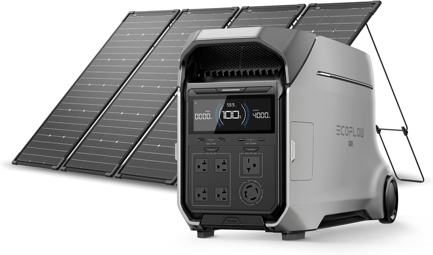EF ECOFLOW Power Station 4096Wh DELTA Pro 3 with 4X125W Solar Panels, 25% High-Efficiency, 4000W Portable Power Station, AC + Solar Fast Dual Charging For Camping RV
