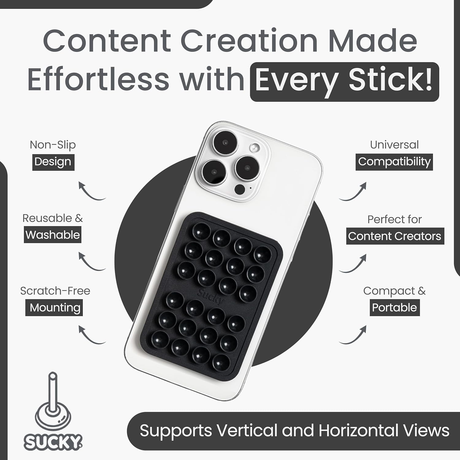 SUCKY Silicone Suction Phone Case Adhesive Mount - Anti-Slip Holder, Hands-Free Fidget Toy, Phone Accessory for iPhone and Android (Deep Black, Magnetic)