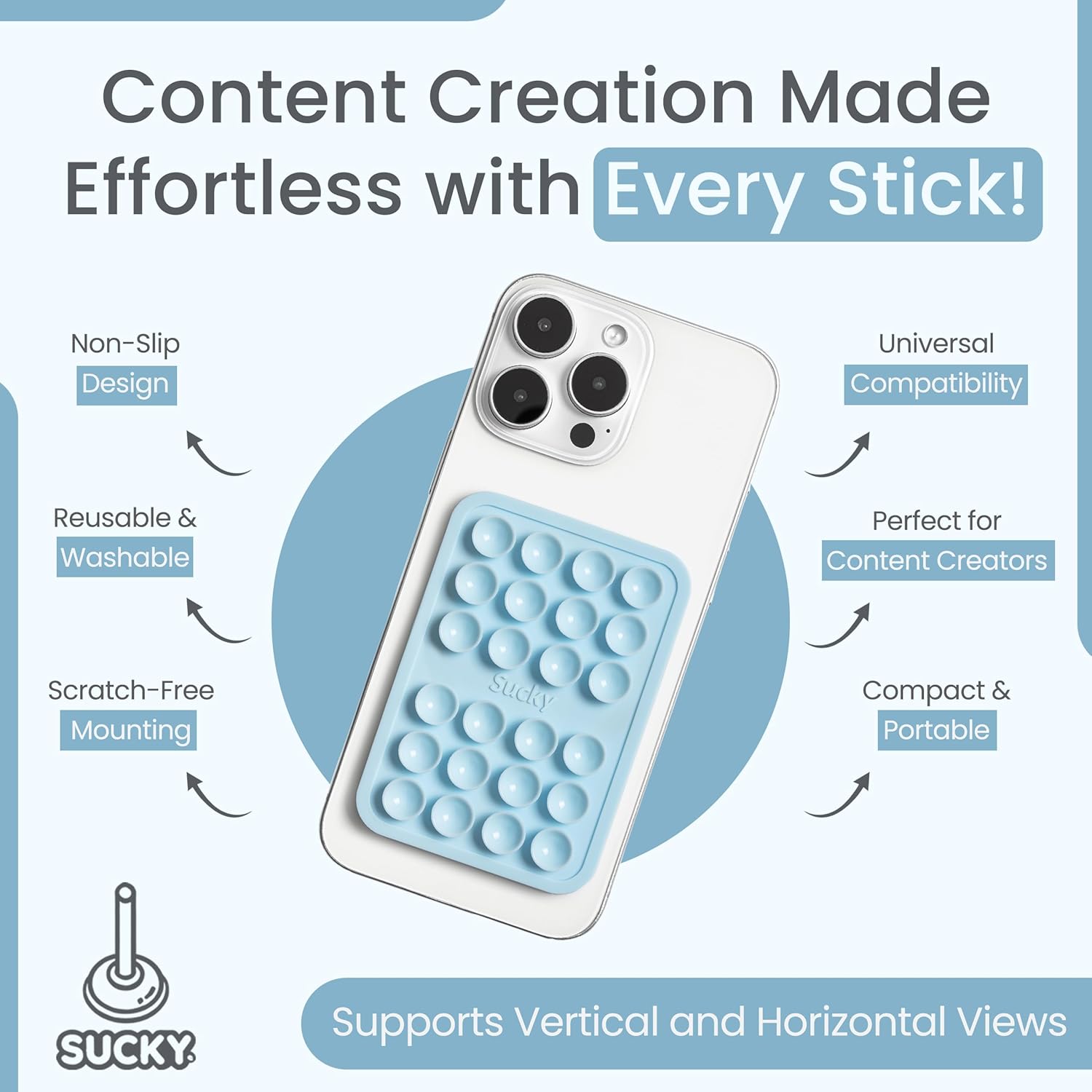 SUCKY Magnetic Suction Cell Phone Grip for MagSafe Case, Silicone Octo Cup Buddy Holder, Hands-Free Removable Mount, Durable Magnet Phone Accessory for iPhone and Android - Baby Blue