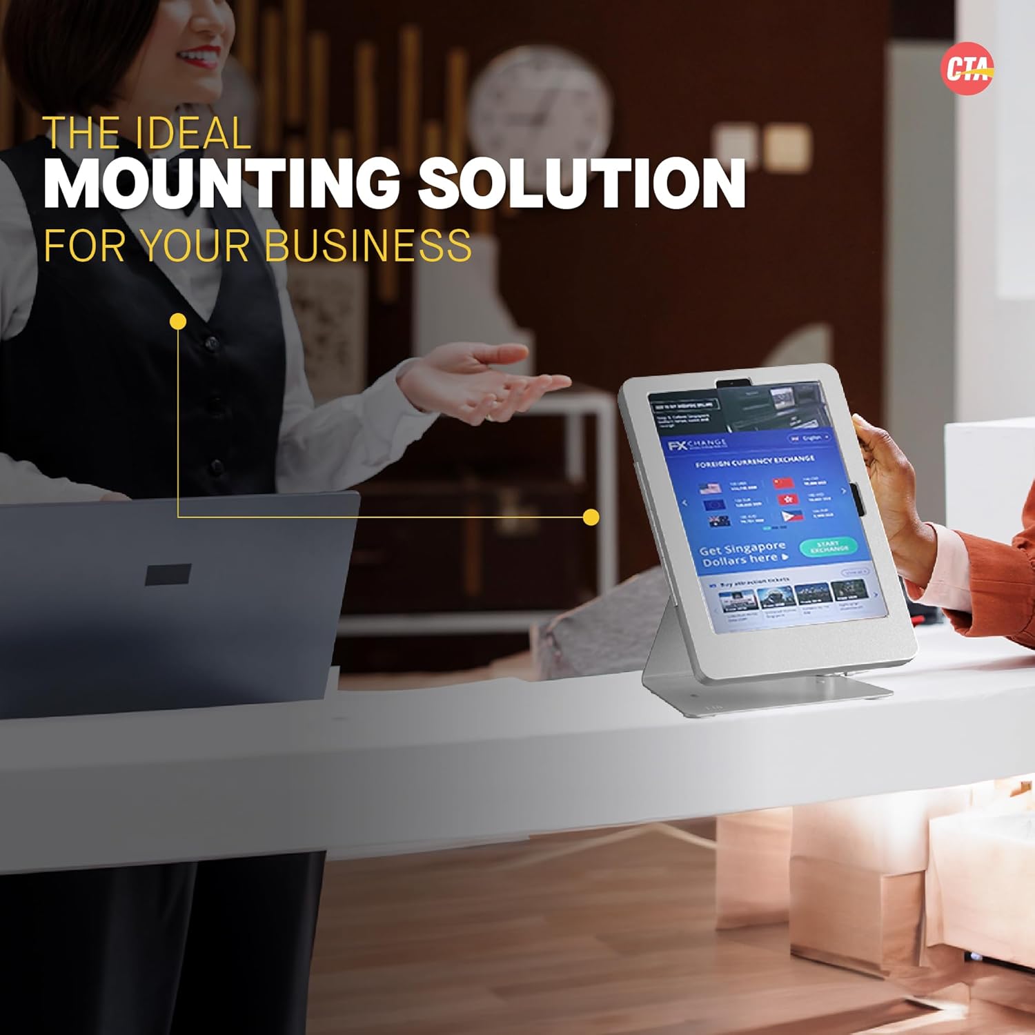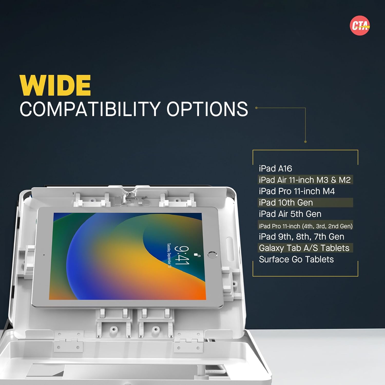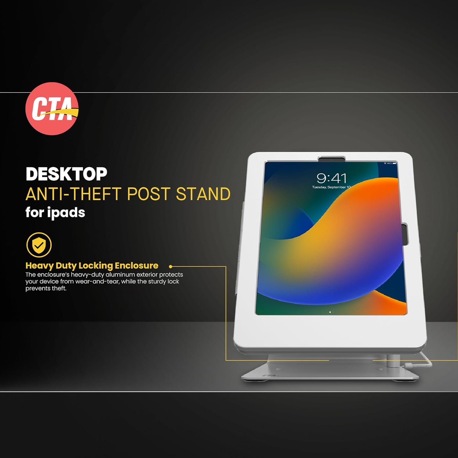 Desktop Anti-Theft Stand – CTA Kiosk Stand with Stylus, Tether, and Aluminum Enclosure for iPad 11th Gen A16 11” - 10th Gen 10.9” - Air 4th & 5th Gen - 11” Pro & More - White (PAD-DASB109W)