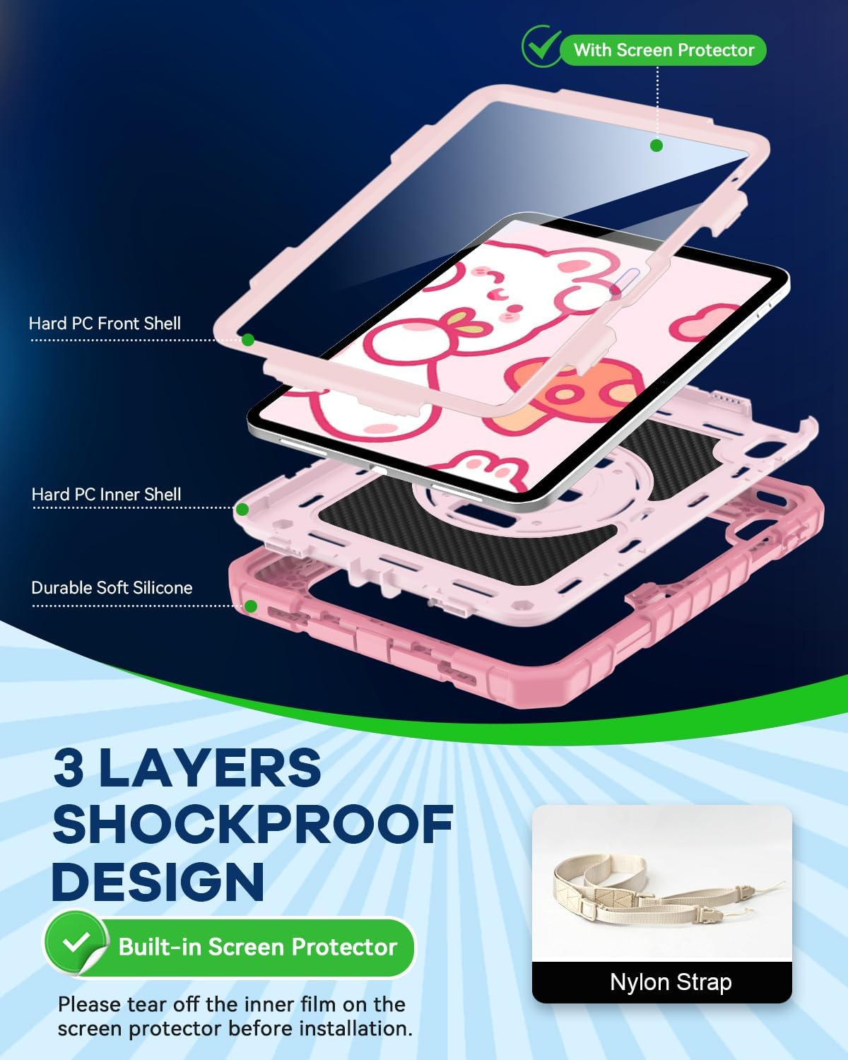 - Built-in Screen Protector: This case for iPad 10th generation kids made of durable hard PC & silicone, 3-layer full body protection structure with SCREEN PROTECTOR, provide a military grade protection & anti-scratch.