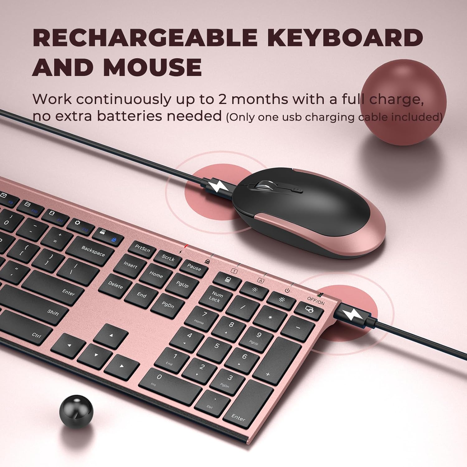 - ♥Rechargeable and Auto Sleep Mode: This keyboard and mouse set comes with a charging cable. We recommend that you use the charging cable included in the product package for charging. The battery life may vary depending on individual usage habits and frequency of use. It can automatically enter into sleep mode in order to save energy and press any key to wake it up