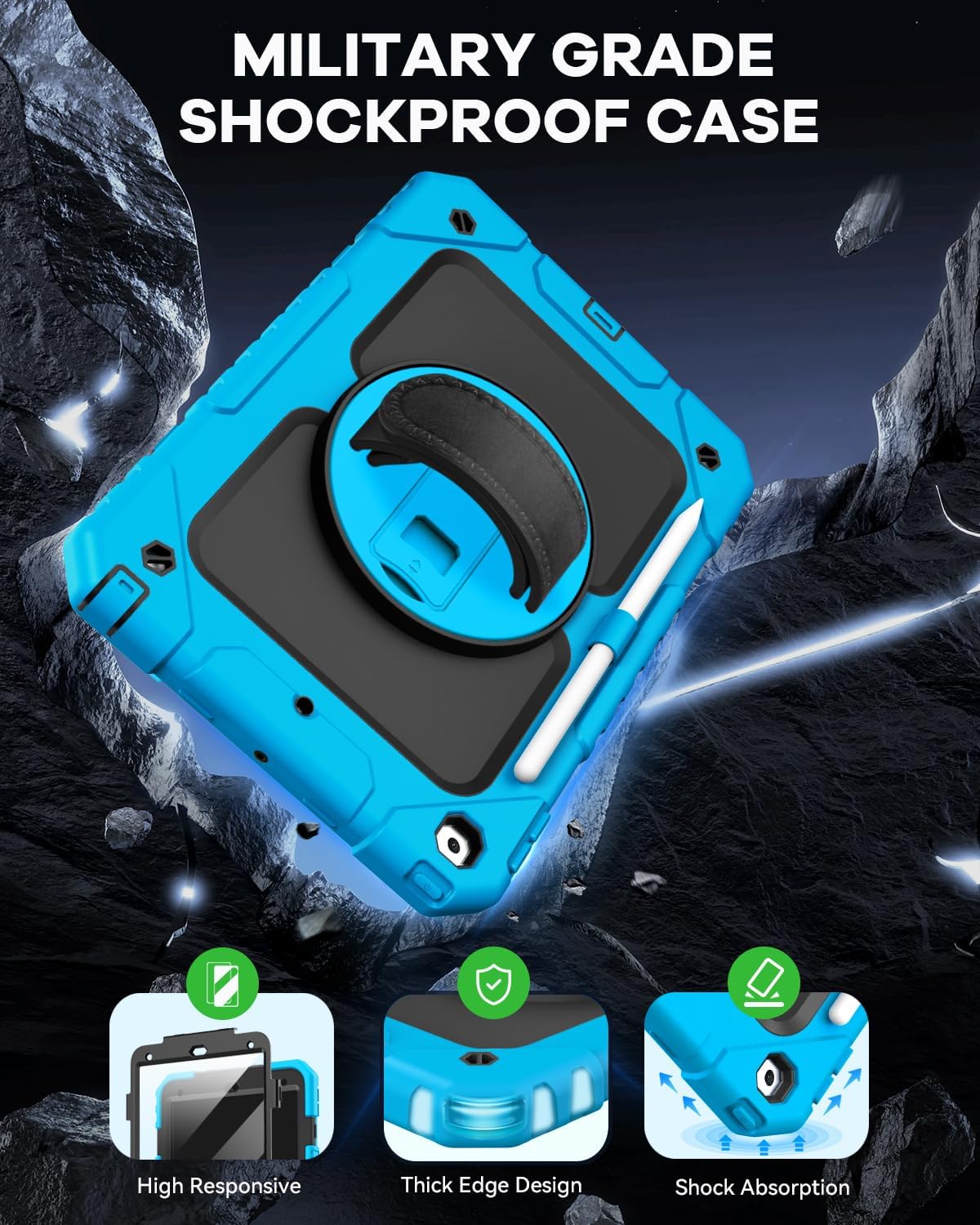 - Built-in Screen Protector: This case for iPad 9th generation kids made of durable hard PC & silicone, 3-layer full body protection structure with SCREEN PROTECTOR, provide a military grade protection & anti-scratch.