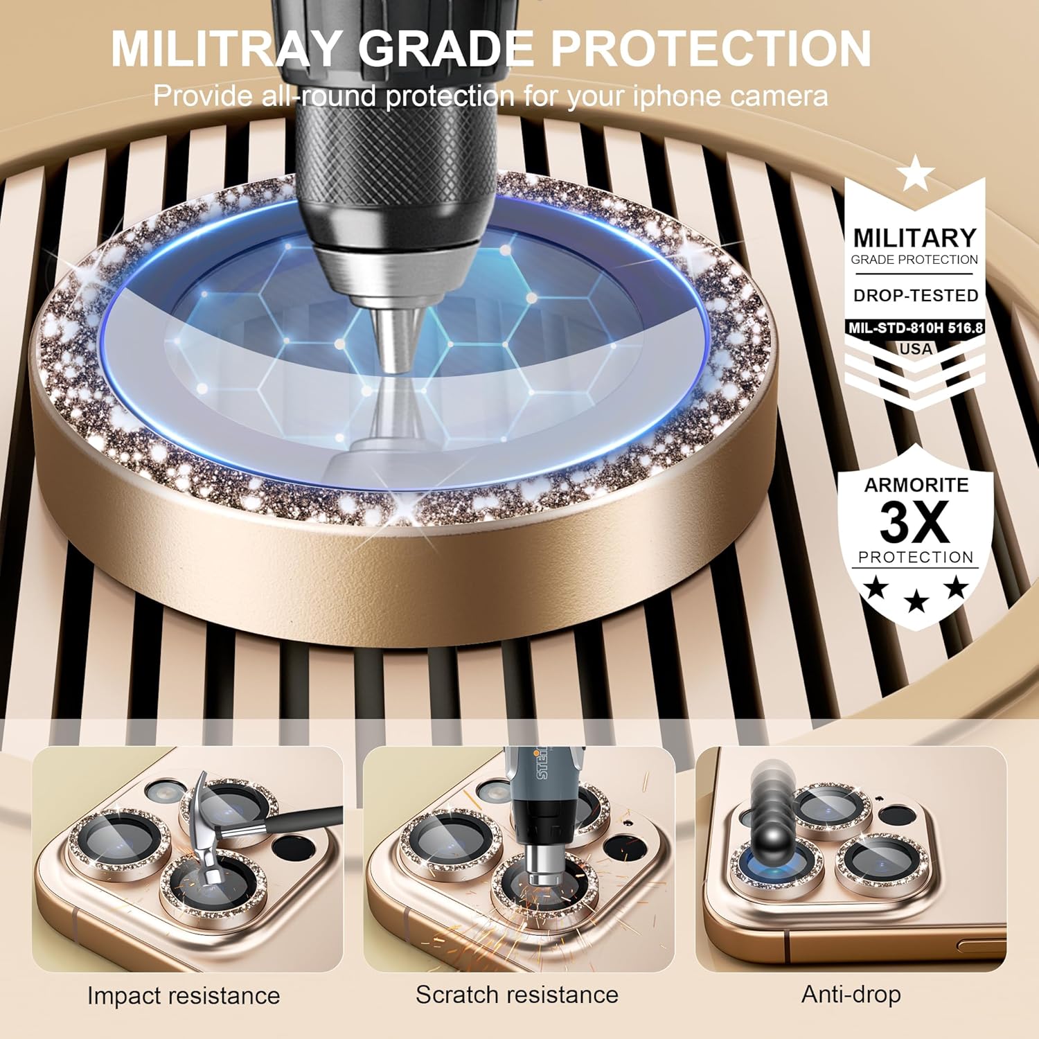 - 4th Gen Upgraded Protection—Plate Made of premium quality aluminum alloy, glass film made of sapphire tempered glass, with powerful glue inside the plate, every camera lens protector has been through thousands of strike tests before leaving factory. Our iPhone 16 pro max and pro camera lens cover is built to last. It will protect your phone from bumps, drops and scratches from daily uses.