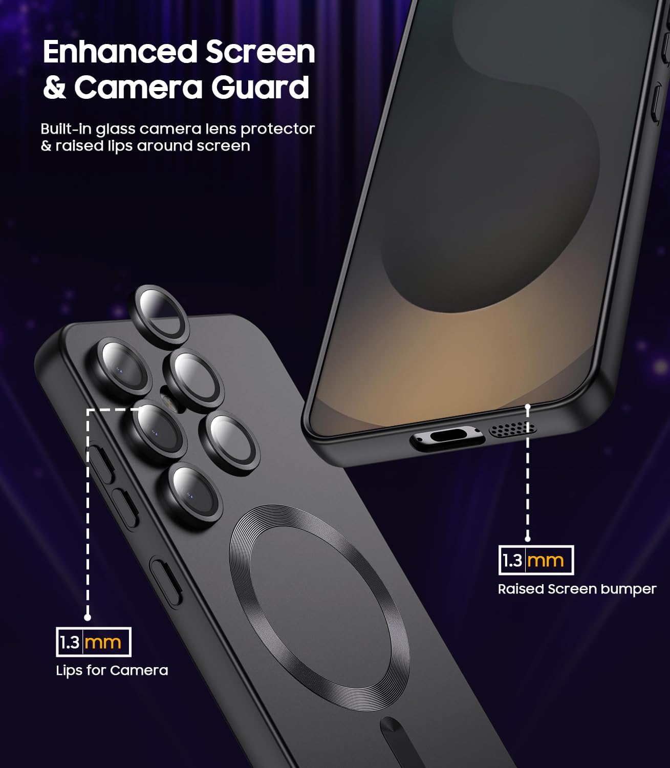 - Complete Camera Protection: The built-in camera lens cover ensures full protection for your Samsung Galaxy S25 camera, while the raised screen lips (1.5mm) safeguard the device from scratches when placed face down