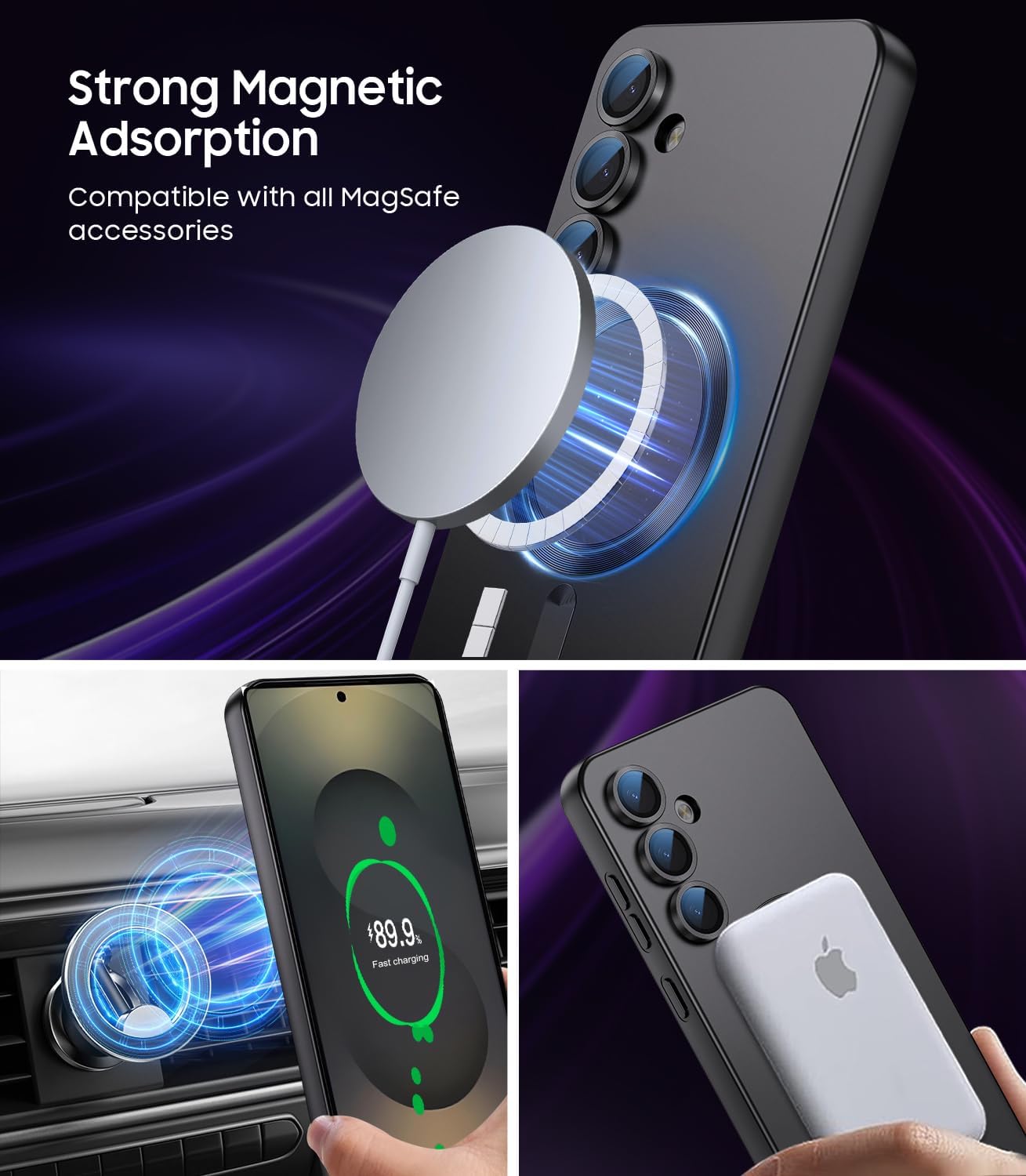 - Compatible with MagSafe: Equipped with 38 strong N52SH magnets, this Samsung Galaxy S25 magnetic case compatible with MagSafe accessories such as car phone holder, wireless charger, and stand