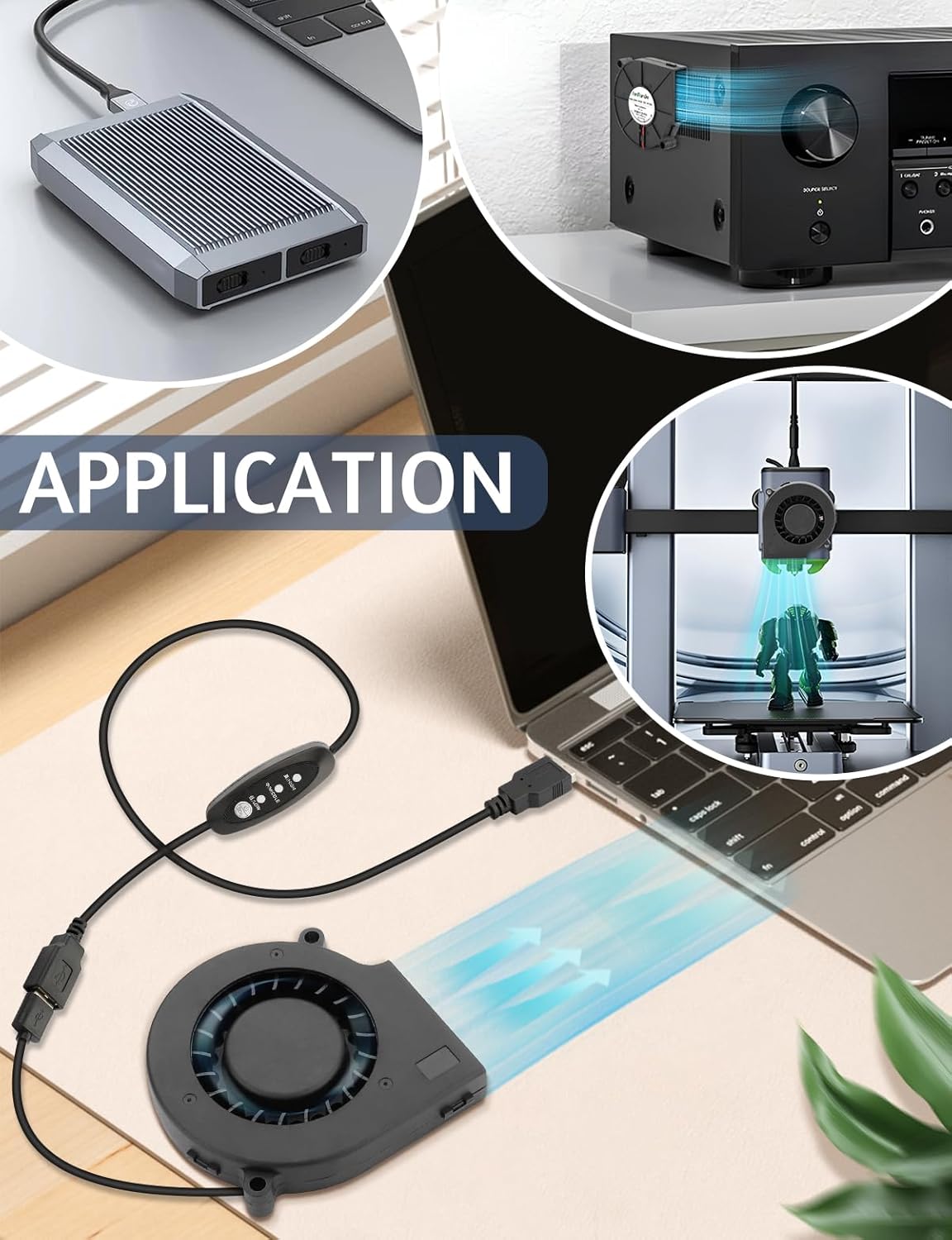 - USB POWERED: Equipped with a shared USB-A power cord, these usb laptop fan are convenient to use, featuring a USB interface. They can be powered by diverse USB sources such as phone chargers, PCs, routers, and power banks