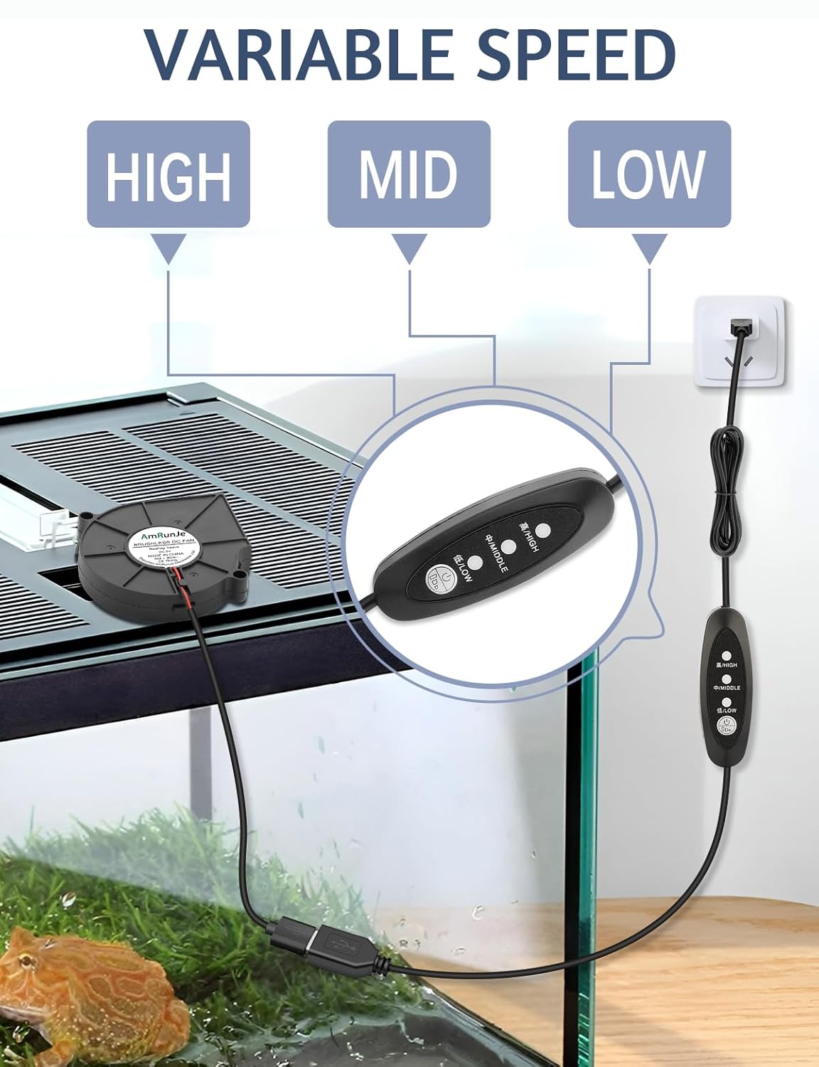- VARIABLE SPEED: This small squirrel cage fan USB control cable with three speed settings, letting you choose your perfect airflow and noise level. It memorizes your last setting, so you don't have to readjust it every time you turn the 12v dc fan