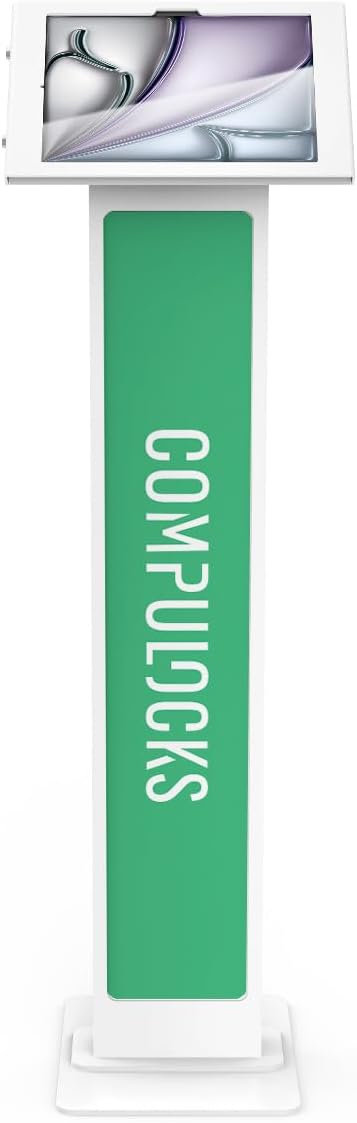 Compulocks iPad Air M2 & M3 13" Apex Enclosure Brandable Floor Stand – Secure Tablet Display Kiosk Mount, Digital Signage, POS Display - White