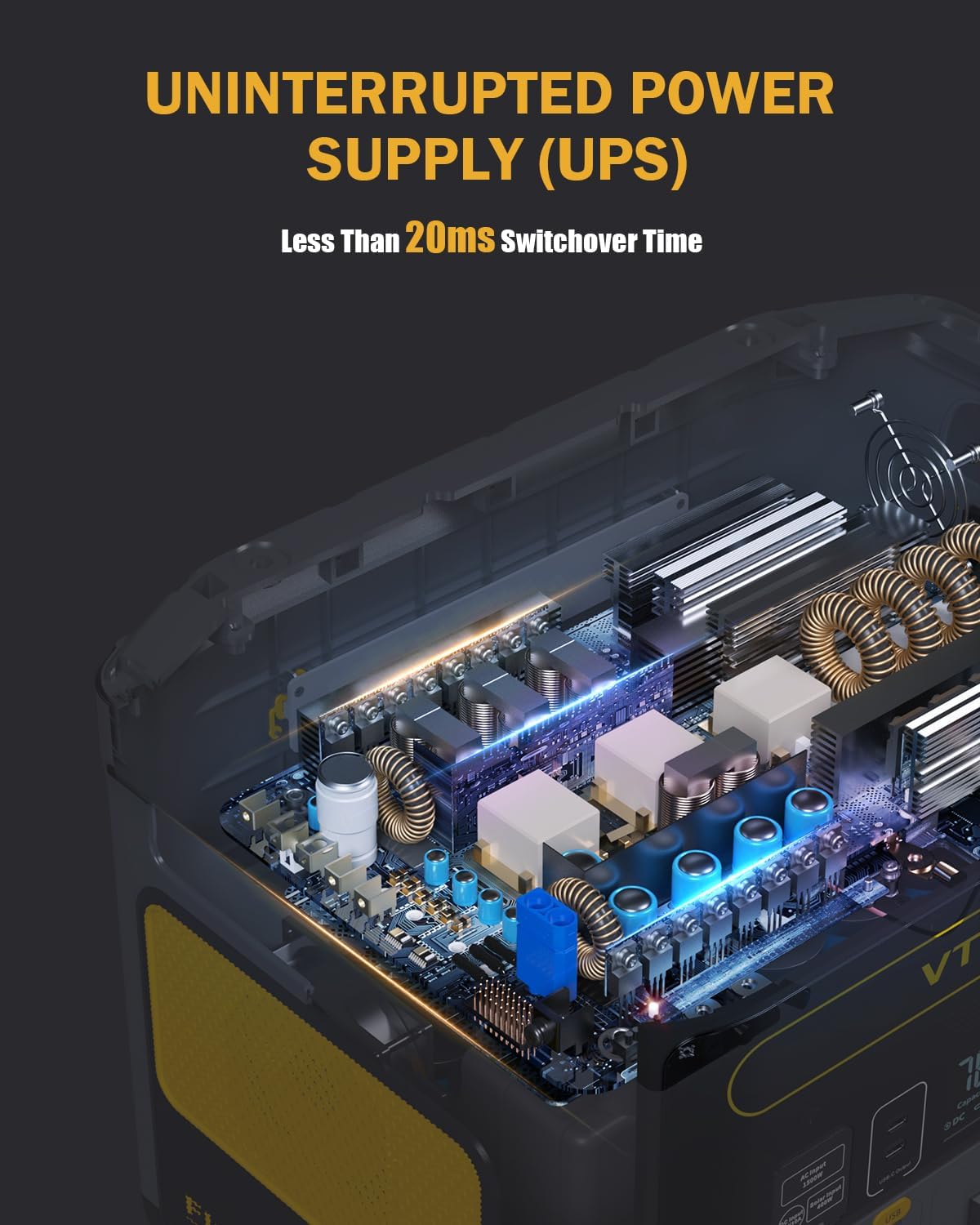 - 【V-BEYOND Technology】V-Beyond Technology designed by VTOMAN enables FlashSpeed 1500 solar power station to boost the capability of its AC inverter, and can power devices more than 1500W. 1548Wh battery capacity and 1500W (3000W peak) output suit for your almost devices—tailored for outdoors, camping, travel, fishing, home blackup, remote work, or emergencies.