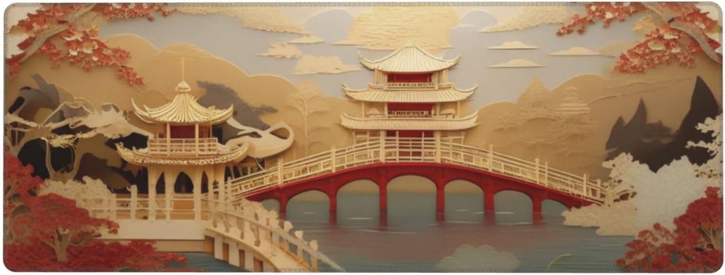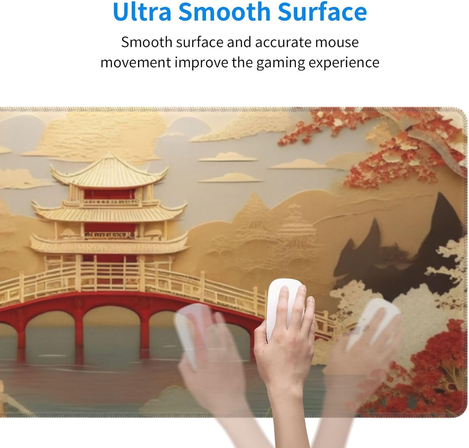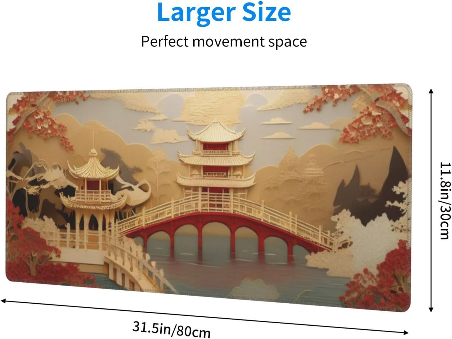 Gaming Mouse Pad, Large Non-Slip Rubber Base Mousepad, Keyboard Mouse Mat, Desk Pad with Stitched Edges, 31.5x11.8inch, Asia Palace