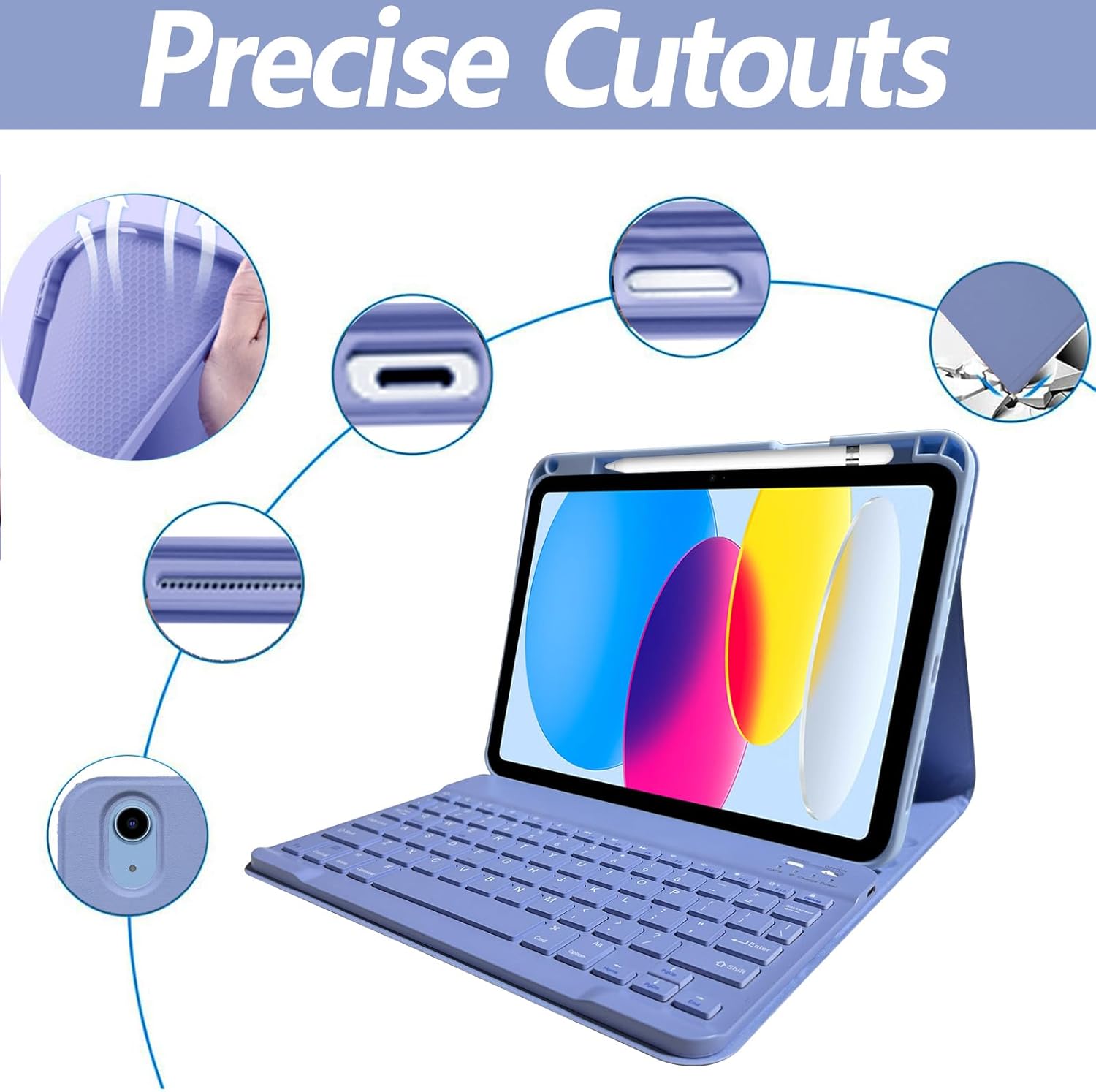 Keyboard Case for iPad 11th 10th Generation - iPad 10th Generation Case with Detachable Wireless Keyboard - Smart Folio Cover with Pencil Holder for 11-inch A16 2025 10.9-inch 2022, Purple