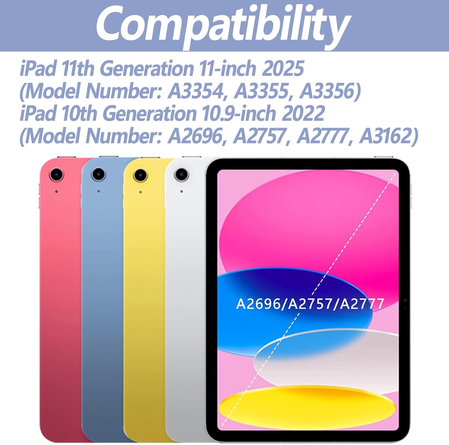 - Compatible Devices : Compatible with iPad A16 11inch 11th Generation 2025 (Model Number: A3354, A3355, A3356), Compatible with iPad 10th Generation 10.9inch 2022 (Model Number: A2696, A2757, A2777, A3162) Compatible with iPad A16 11inch 11th Generation 2025 (Model Number: A3354, A3355, A3356), Compatible with iPad 10th Generation 10.9inch 2022 (Model Number: A2696, A2757, A2777… See more