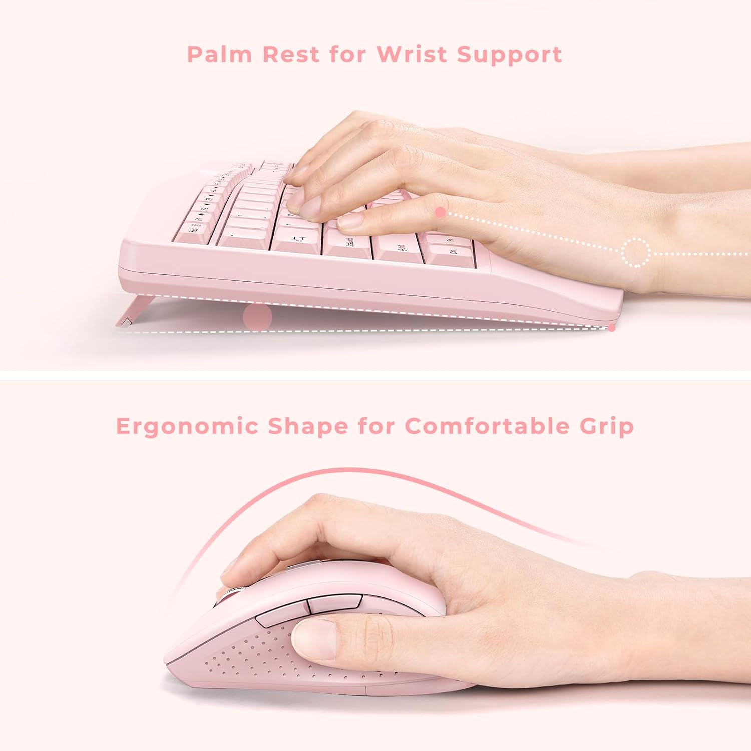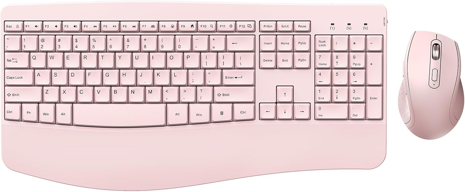 Wireless Keyboard and Mouse - Full Size Ergonomic Keyboard with Palm Wrist Rest Ergonomic Mouse Cordless for Windows Computers Laptops - Light Pink (Upgrade)