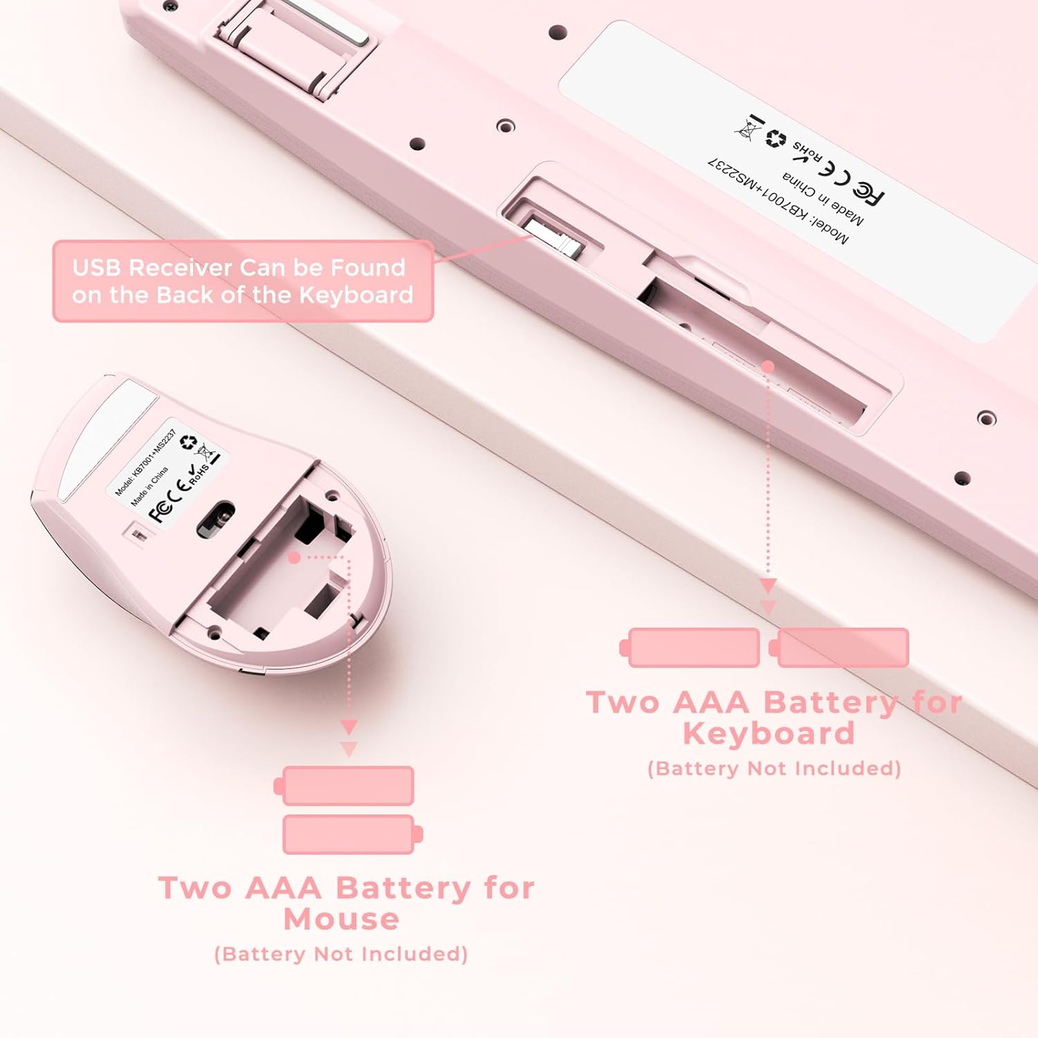 - One Receiver for Both the Keyboard and Mouse -- The plug-direct receives allows the mouse and keyboard to work wirelessly within a range of 10 meters, just plug it into a free USB port in your PC or laptop and you’re good to go! Both the keyboard and mouse equipped with a slot on the back to store the receiver easily when you are finished using it