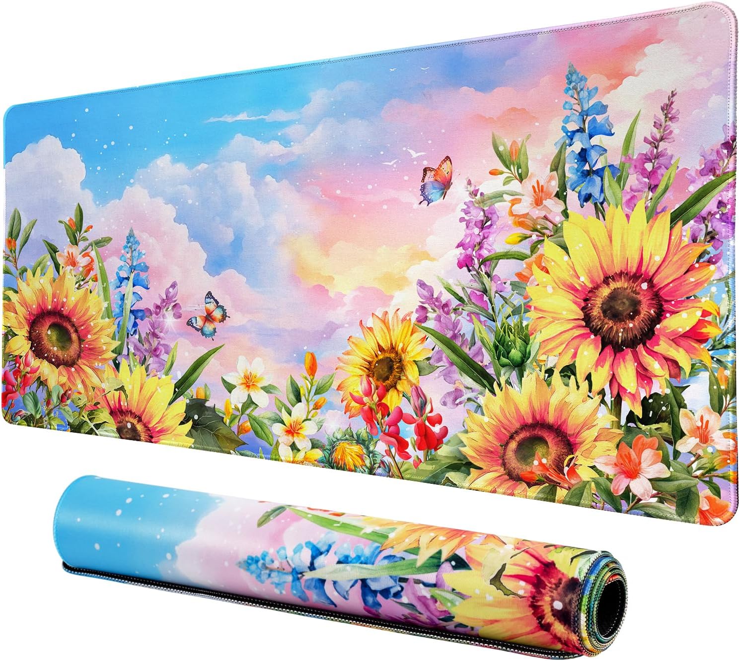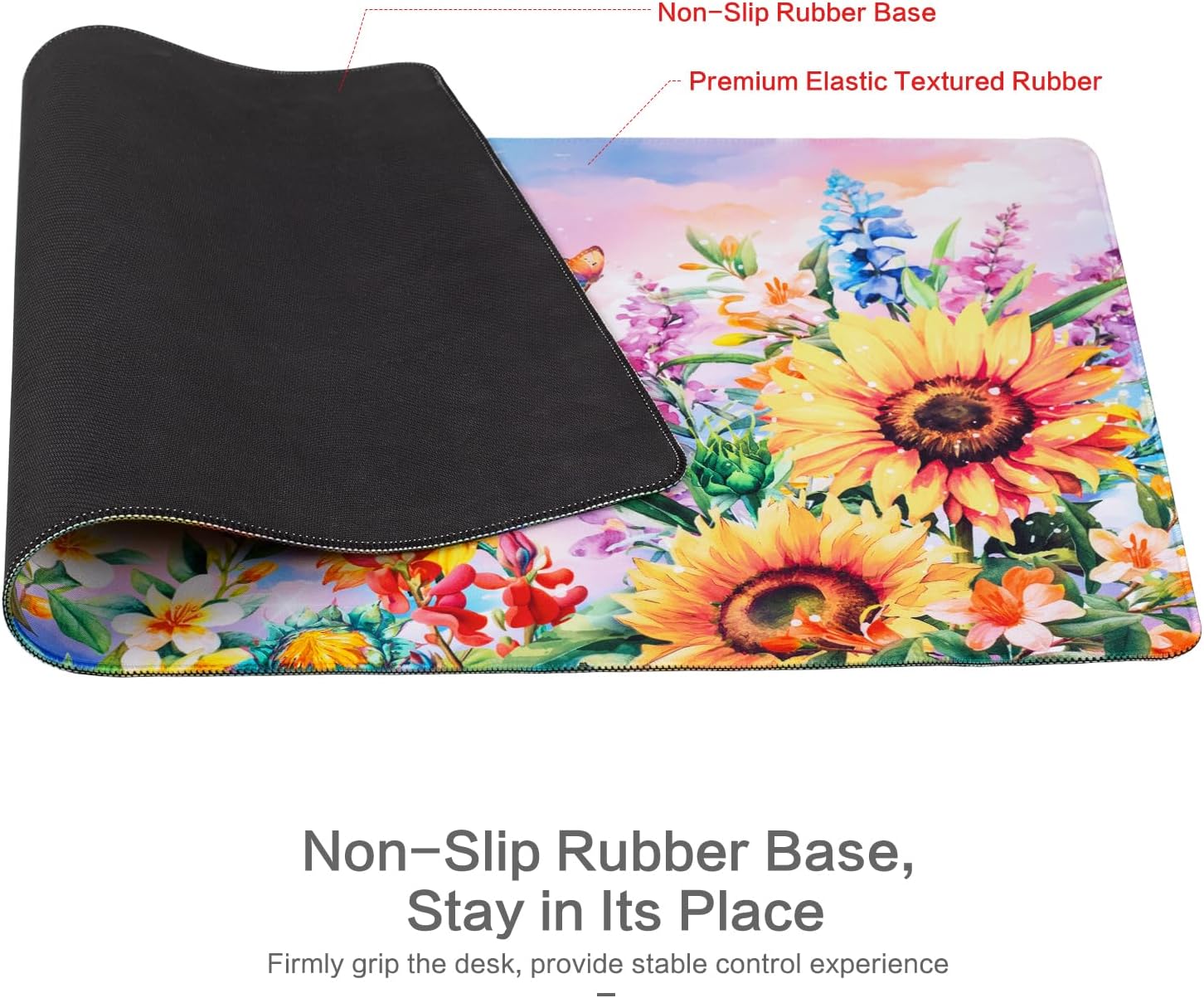Lokigo Sunflower Mouse Pad Desk Pad Large Gaming Mouse Pad Floral Butterfly Non-Slip Rubber Base Mousepad Keyboard Writing Desk Mat for Home Office Work Study Gaming 31.5"x15.7", Flowers