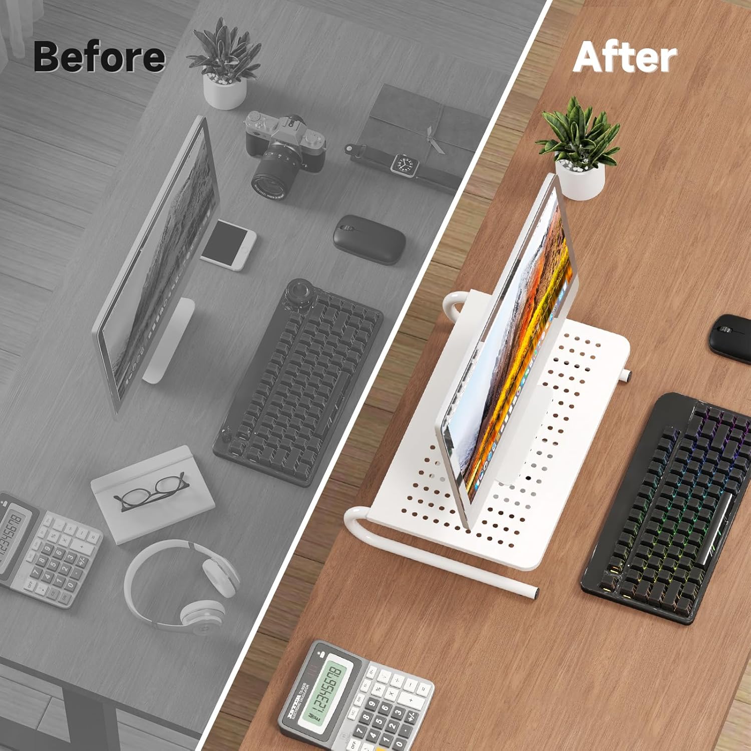 suptek Monitor Stand Riser for Computer,Laptop,Printer, Notebook and All Flat Screen Display with Vented Metal Platform and 4 Inches Height Underneath Storage,White(MST004W)