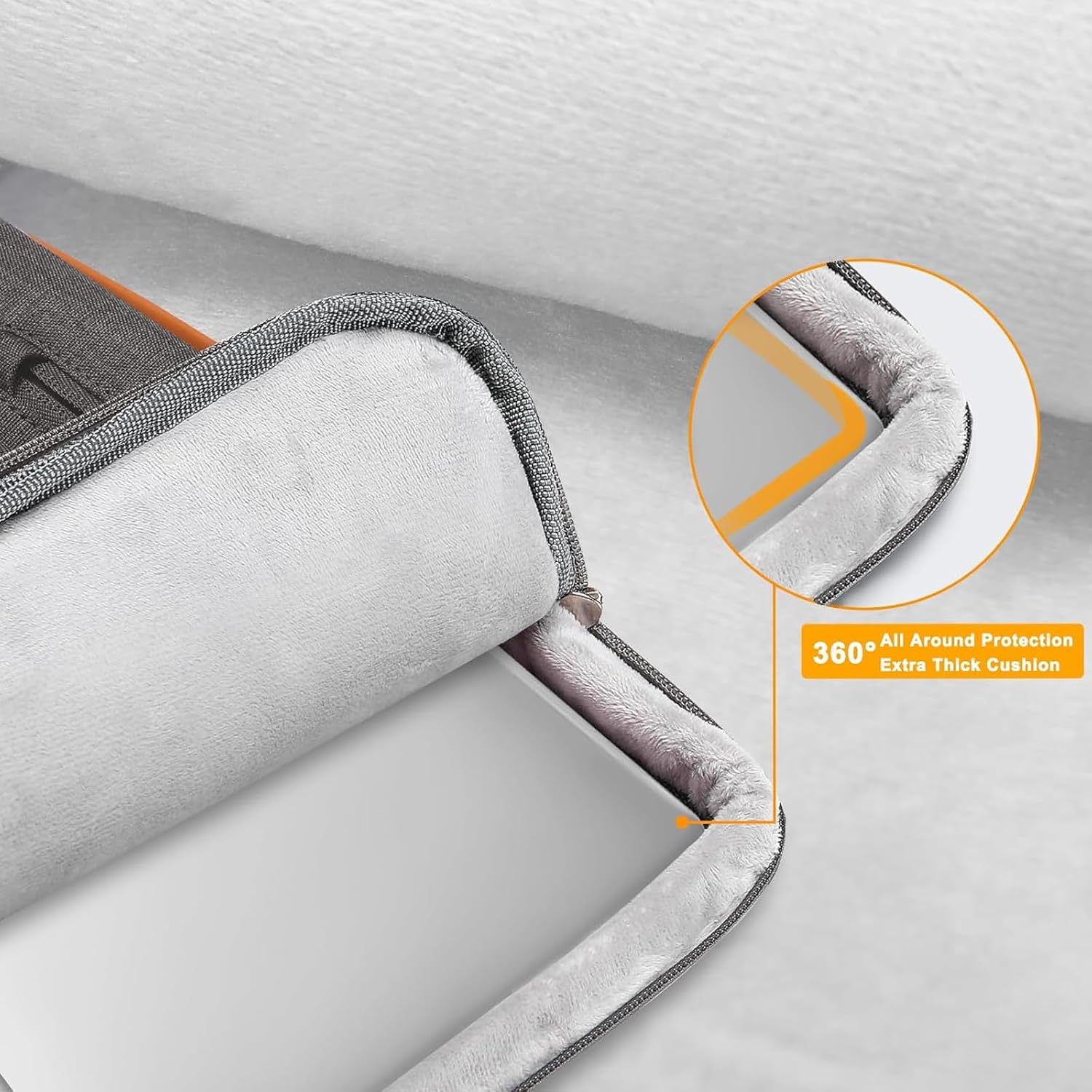 - The laptop sleeve with organizer pockets outer polyester fabric of the case enable you to carry your laptop / notebook / Ultrabook computer in a uniquely sleek style. Features a polyester foam padding layer and fluffy cushion for bump and shock absorption and protection of your device against dust, dirt, bump, shock and accidental scratches.