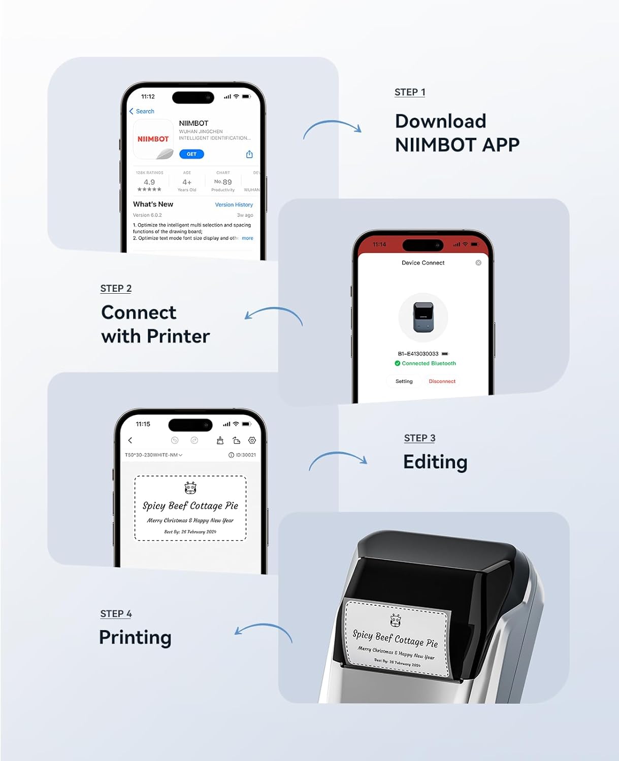 - 【Easy to Use】The B1 bluetooth label printer support iOS, Android. Download the "NIIMBOT"app, select the printer model B1 from the app, and connect printer. USB cable connection for PC, need to download driver form Niimbot brand official website, please see the details page video description.
