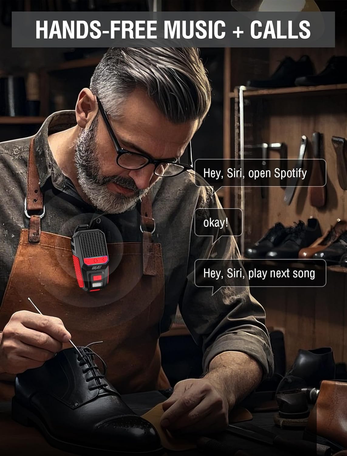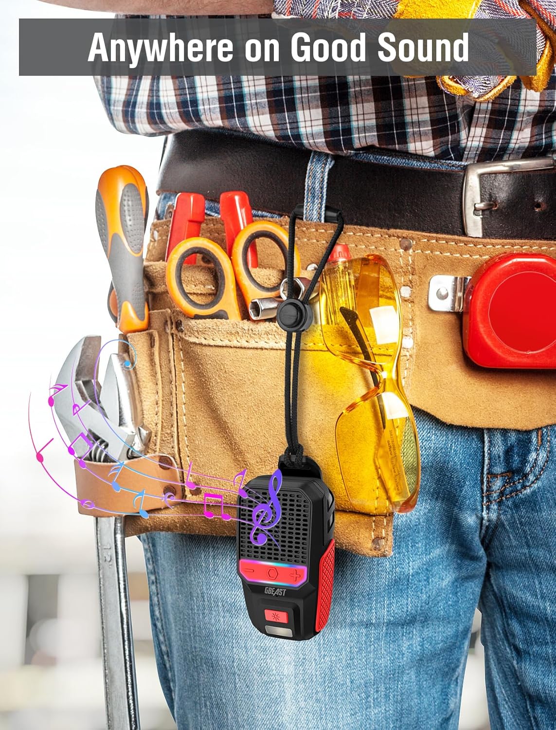 - 【Hands-Free Calls & Music】 GBEAST wearable bluetooth speaker built-in ENC noise-canceling mics for clear calls. It can via clip/lanyard (included) wear to tool belts/clothes collar/backpacks/bike handlebars with one-handed operation. Bluetooth 5.4 + 85% stereo music give you a 360° depth experience when you call or play music.