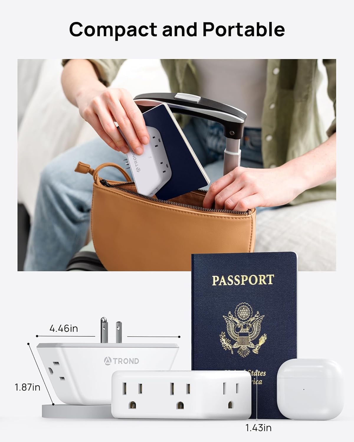 - Compact and Mighty: With a compact size of 4.46 x 1.87 x 1.43 inches, this outlet adapter is perfect for business trips or travel. It saves space and is particularly suitable for tight spots, such as behind couches, furniture