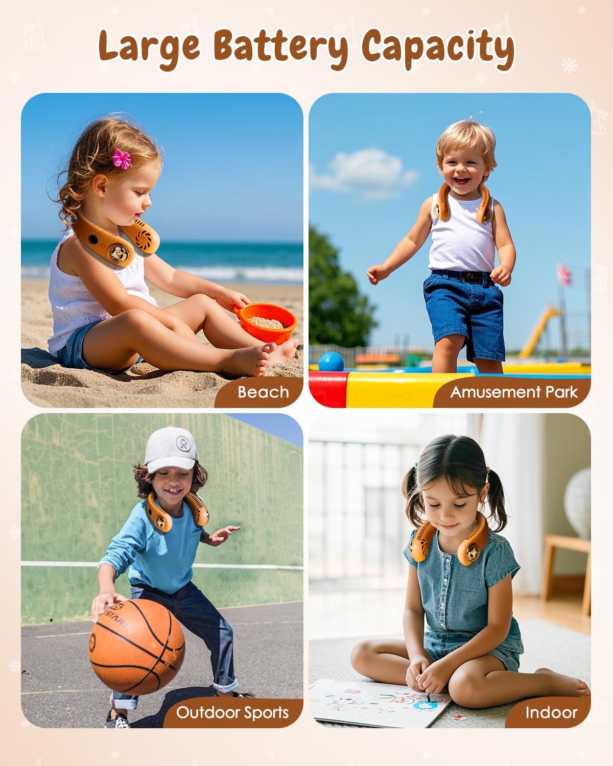 - ❃【Special for Kids】Say goodbye to bulky adult neck fans! Adult neck fans are often too large and their wind is too strong for children. This children’s neck fan is specially designed for kids aged 4-14 years. By adjusting the fan angle, the soft breeze can gently blow on the child’s face, making it more comfortable and suitable for kids.