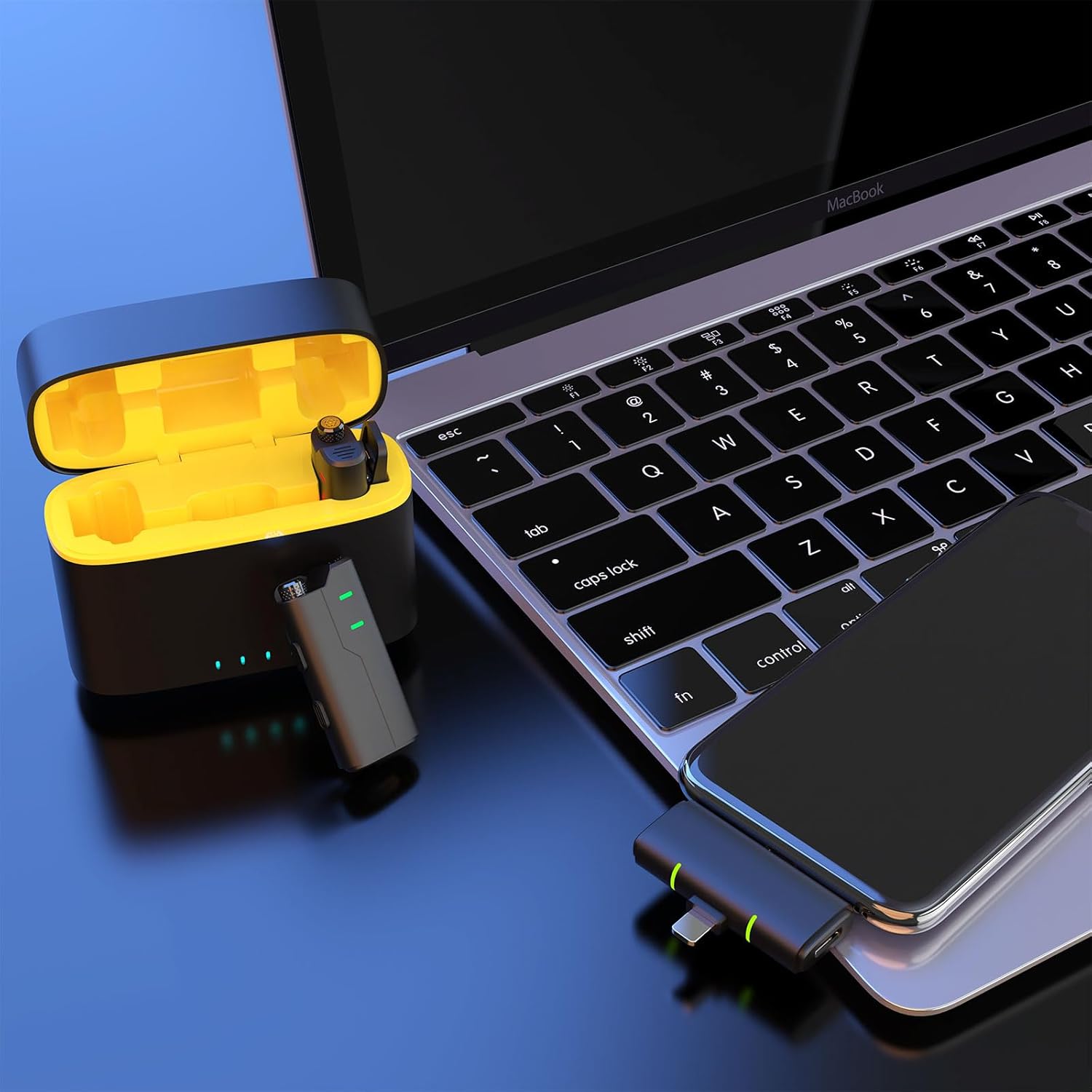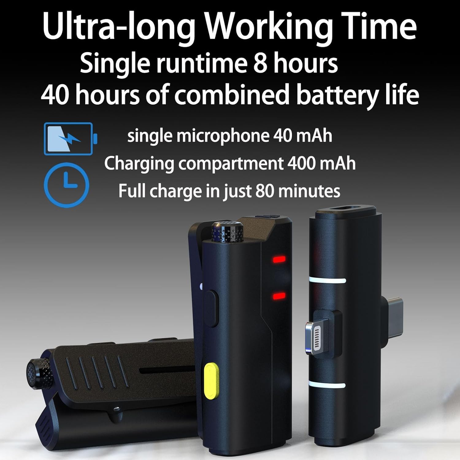 - Highly sensitive microphone that perfectly captures clear audio from up to 65 feet away. Built with a high-capacity rechargeable battery and a low-power chip, this mini wireless lavalier microphone offers over 8 hours of battery life and takes only 80 minutes to fully charge