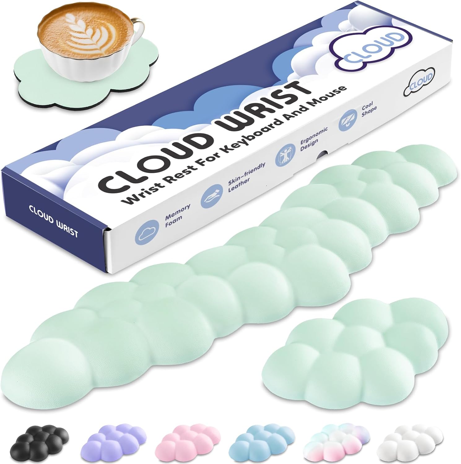 - 3-in-1 Cloud Desk Set:This 3-piece cute desk accessory set includes a keyboard wrist rest, a matching mouse wrist rest, and a cloud-shaped coaster. Designed for both function and aesthetics, it's a thoughtful office gift for family, friends and teachers, or coworkers who want to add comfort and style to their workspace