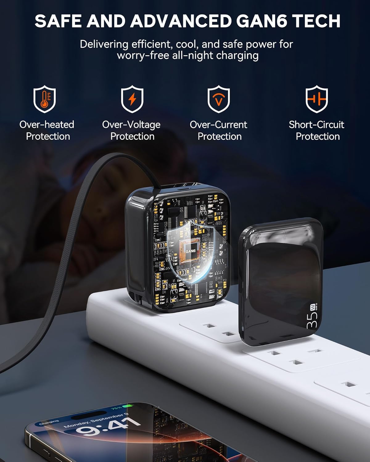 - 【Advanced GaN Technology for Cooler, Safer Charging】- Equipped with next-gen GaN III chips, this retractable wall charger reduces heat emission by up to 30% while charging. The built-in multi-protection system safeguards against overcharging, overheating, and short circuits, ensuring a reliable and safe charging experience. Certified by UL, PD 3.0, and QC 3.0, this charger meets the highest safety standards.