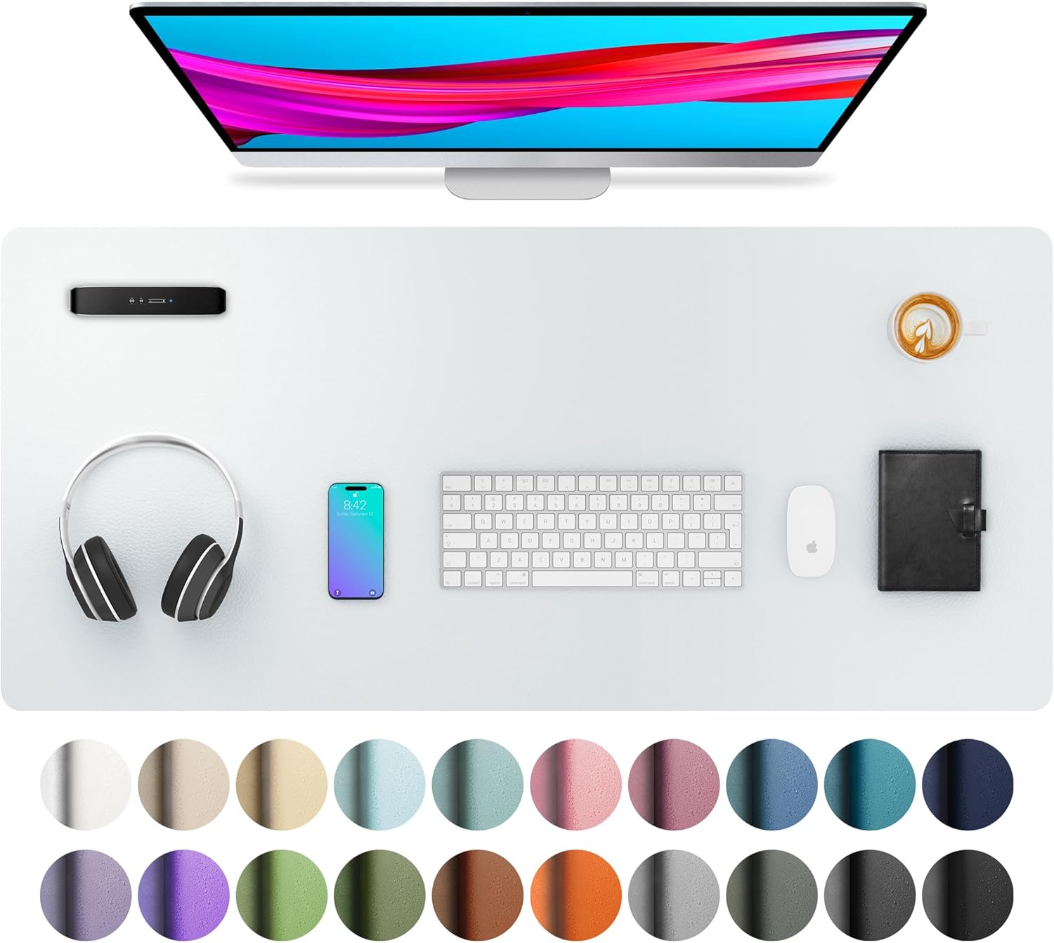 Aothia Leather Desk Pad Protector, Mouse Pad, Office Desk Mat, Non-Slip PU Leather Desk Blotter, Laptop Desk Pad, Waterproof Desk Writing Pad for Office and Home (Barely Grey, 36" x 17")