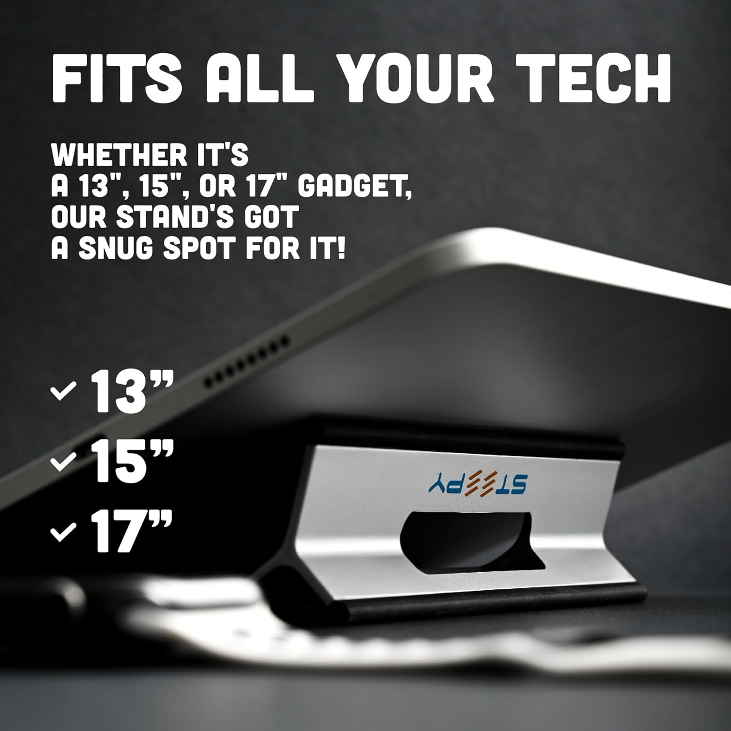 Steepy Portable Laptop Stand for Desk – Adjustable Height, & Portable Laptop Holder – Ergonomic Computer Stand for Cooling & Comfort – Slip-Proof, Sturdy Design – Universal Fit for 13-17 Inch Devices