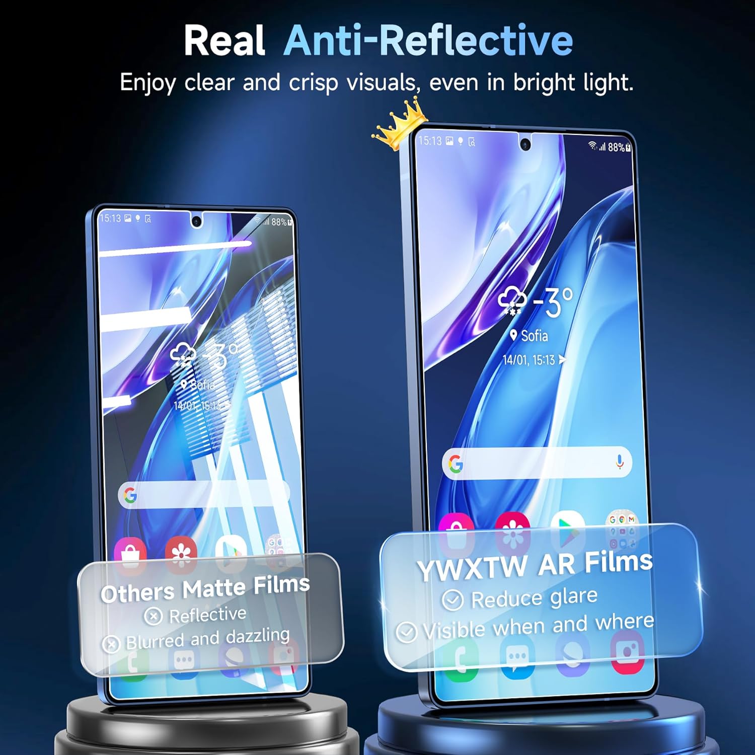 YWXTW Anti Reflective Screen Protector for Samsung Galaxy S25 Ultra, Anti Glare & EZ Unlock [Bubble Free Applicator] [Not Glass] Display Protective Film Shield Accessories Case Friendly, 2 Pack