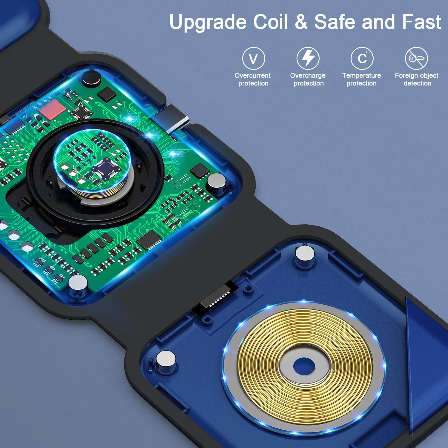 - Pay Attention to Family Health: Many other phone wireless charging station do not take anti-electromagnetic measures, and internal radiation will spread, causing harm to the human body. This folding charger uses a professional magnetic isolation sheet inside, no radiation leakage, the elderly and children can use it with no worry. This wireless charging station for apple products strive to protect the safety of you and your family.
