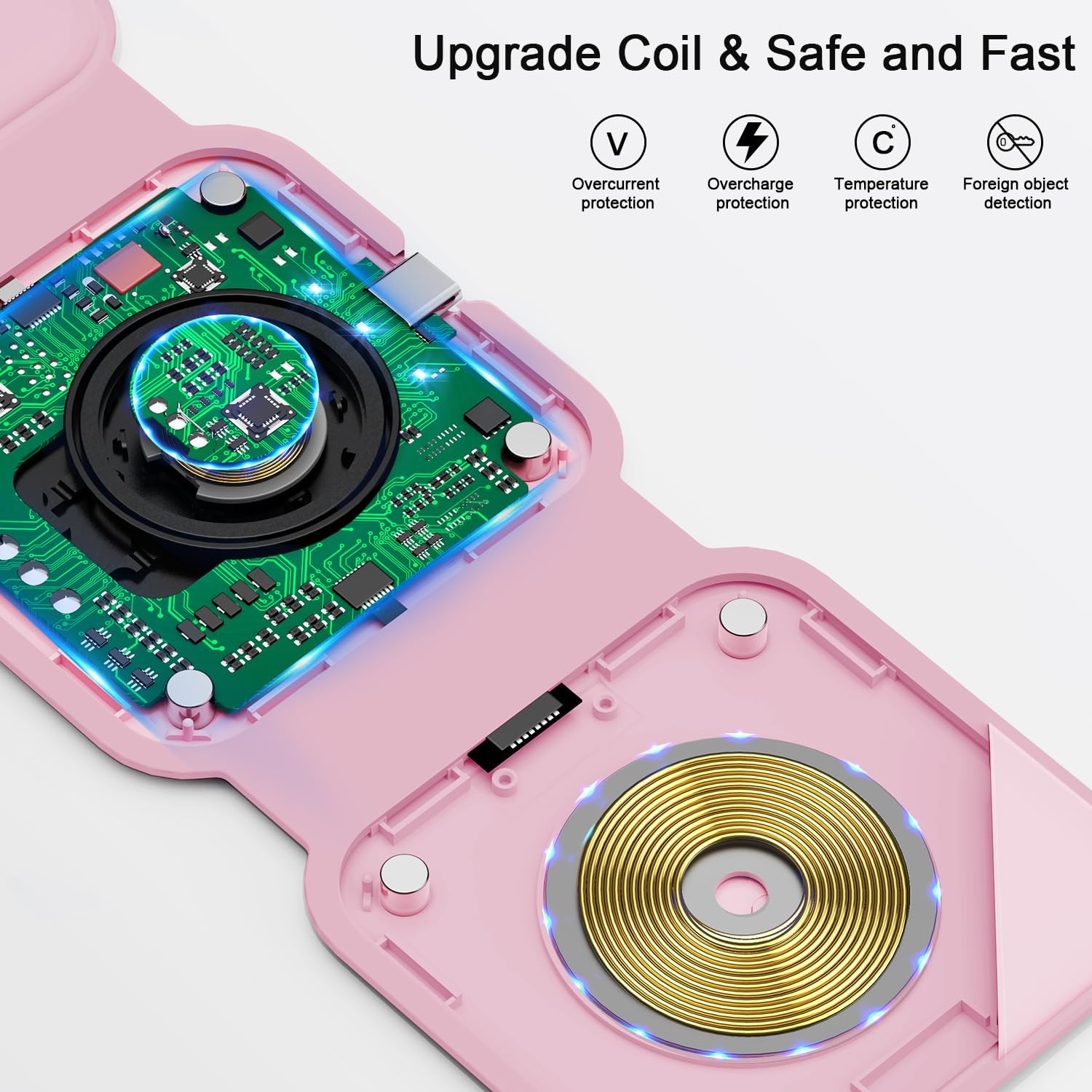 - Pay Attention to Family Health: Many other phone wireless charging station do not take anti-electromagnetic measures, and internal radiation will spread, causing harm to the human body. This folding charger uses a professional magnetic isolation sheet inside, no radiation leakage, the elderly and children can use it with no worry. This wireless charging station for apple products strive to protect the safety of you and your family.