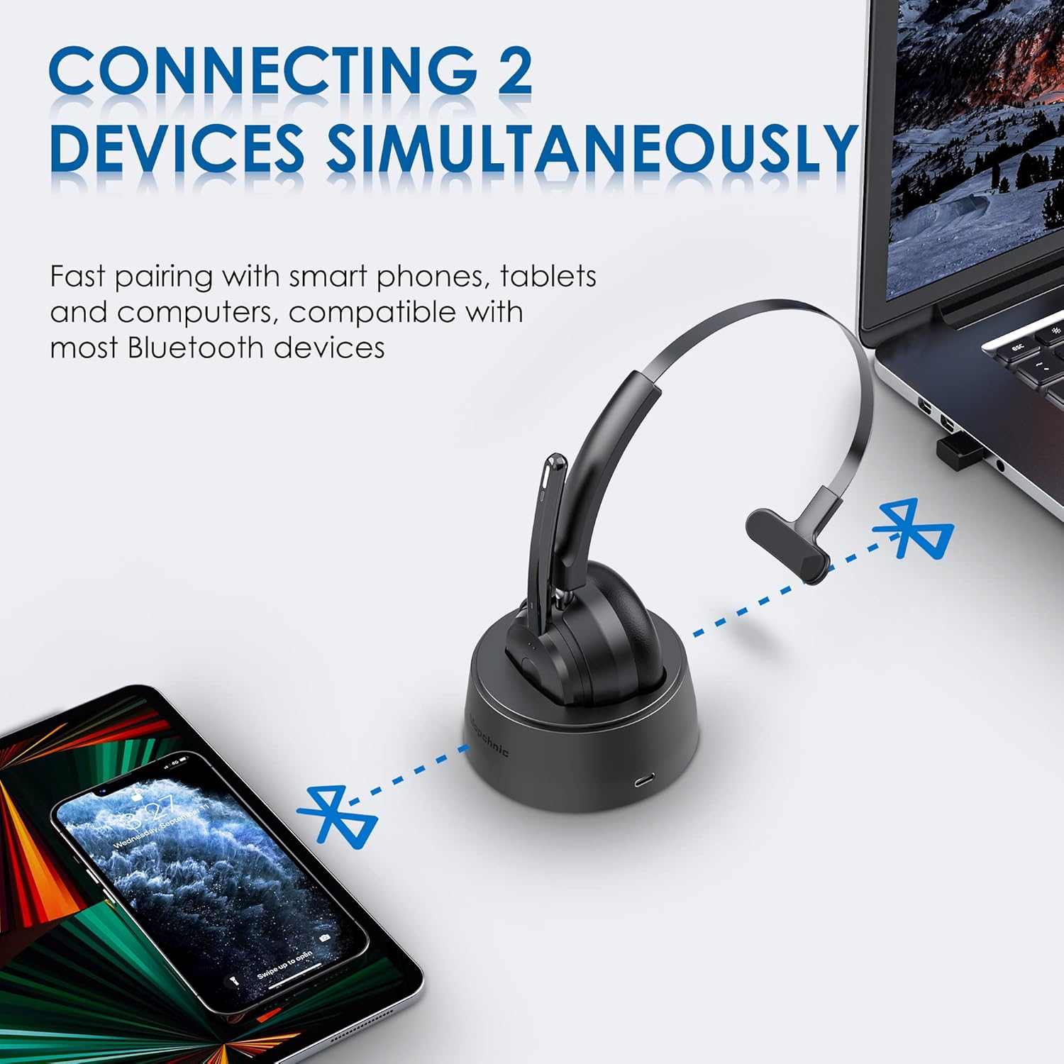 - 【BLUETOOTH USB DONGLE INCLUDED】This Bluetooth headset comes with a USB dongle in the package, you can use our Bluetooth headset on a computers without Bluetooth function, just plug the USB dongle into your PC, turn on the Bluetooth headset, they will pair automatically. Perfect for call centers, offices, remote work, online classes, Skype, Zoom, Google Meetings, and more